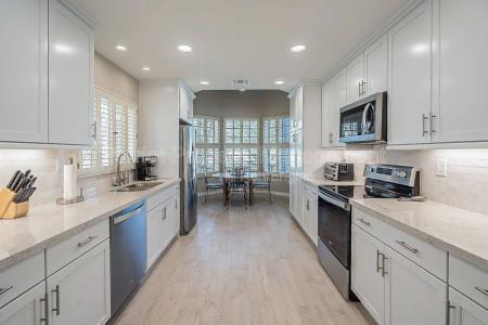 Updated 3 bedrooms & 3 baths in gated community of Suntree East. Gourmet kitchen with new white kitchen cabinets and quartz counters. New stainless appliances. Two upstairs master suites and additional guest... bedroom downstairs with new shower. All new flooring. Main Master has it's own balcony new shower and soaking tub. High ceilings and lots of natural light make this north/south exposure the perfect home. Backyard is complete with covered patio and desert landscape. Community offers year round heated pool and spa. Take advantage of all that Scottsdale Ranch has to offer- tennis courts, lakes, boating, kayaking, bike & walking paths and much more. Close to shopping, restaurants and the 101. 90 Day Minimum. $100 Utility Cap For Electric/Water/Garbage. $4700 June To Aug. $5100 September, October And May. $5500 Nov To Apr. Also Avail For Annual Rental (without Utilities) $5100/Monthly on Annual Lease. Tenant Agrees To No Smoking, No Use of Interior Fireplace. Pool, Tennis Court, Fireplace, Patio & Balcony. Listing provided by RentalSource. Read more