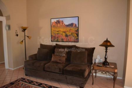 $2000/Monthly For The Annual Furnished Rate. This fully furnished rental awaits your arrival. Pack your clothes and toothbrush. Enjoy the sunshine in Sun City West. Backyard is a must see, private and great for... entertaining friends, BBQ-ing and watching the sunset. This Ventura model has vaulted ceilings, tile and carpet. The master bedroom has a King sized bed and a large bay window, private bath and a large walk-in closet. Guest bedroom has another king sized bed. Kitchen has newer appliances and everything you need. Large indoor laundry. Two car garage with additional storage. Large corner lot. Don't miss the opportunity to enjoy the best time of the year in Arizona. $3,100 Nov-April. May-Oct $2000. $150 Utility Cap. Rec Center Pass available for additional fee. Pet Friendly, Vaulted Ceiling, Carpet & Tile. Listing provided by RentalSource. Read more