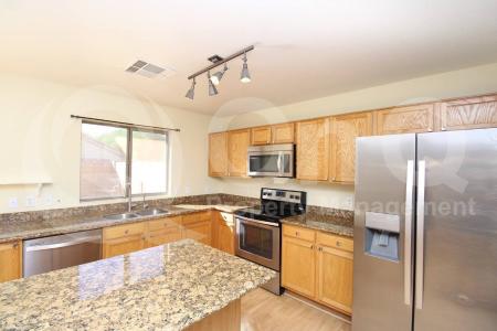 1,468 Sq Ft. 3 bedroom, 2.5 bath home in Gilbert's Western Skies community. Thoughtful two-story floor plan with soaring vaulted ceilings and welcoming great room entry. Charming eat-in kitchen with included... appliances, & ample cabinetry/countertop space. Kitchen opens to spacious family room, great for entertaining. Sliding door patio access. Additional great room living/dining. Neutral interior with wood-like flooring in all the right places. This home offers 3 nicely sized bedrooms, each with ample closet space. Upstairs primary suite with full bath. Blinds + ceiling fans. Laundry room with included washer/dryer. Enjoy an oversized backyard with covered patio & grass landscaping. 2 car garage. Western Skies is a desirable community offering community golf course, playgrounds and biking/walking trails throughout. Great Gilbert location with easy Loop-202 access. Pet Policy: Cats Allowed with the following exceptions: Up to 2 cats Max will be considered upon approval. No dogs. Application: $65 Application Fee Per Applicant 18 years or older (Nonrefundable). Once all required documents have been submitted by every applicant, please allow 24-72 business hours for processing. Move-in dates more than 21 days after application approval require additional approval. Lease Length: 12-month minimum (longer lease terms may be negotiable) Initial Move-In Costs: Applicants may choose between a traditional security deposit or a Security Deposit Alternative program. A one-time lease preparation fee of $250 plus the first month's rent is due prior to move-in. If the applicant has a pet, a $150 nonrefundable pet fee per pet applies. Recurring Monthly Costs: A 4.99% administration fee applies. All on Q Property Management residents are enrolled in the Resident Benefits Package for $49. This package includes liability insurance, credit building to help boost your credit score with timely rent payments, a move-in concierge to make utility connection and home service setup simple, a Renter to Buyer program and more. All information, including advertised rent and other charges, is deemed reliable but not guaranteed and is subject to change. Cats Allowed, Concierge, Fenced Yard, Playground, Dishwasher, Washer, Dryer, Microwave, Refrigerator, Ceiling Fan, Patio, Vaulted Ceiling, Family Room, Laundry Room & Pantry. Listing provided by RentalSource. Read more