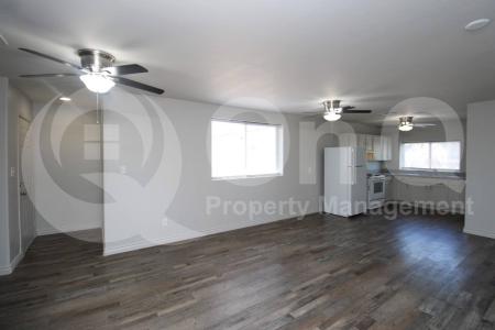 Available Now. 800 Sq Ft. 3 bedroom, 2 bath home in Phoenix. Desirable single story floor plan. Open concept living/dining. Charming kitchen with white cabinetry and included appliances. Neutral interior with wood... like flooring throughout. Primary bedroom includes a full bath with a walk-in shower and vanity sink. This unit has 3 nicely sized bedrooms with ample closet space. Assigned carport space. Great location within the heart of Phoenix plus easy access to freeways, Phoenix Sky Harbor and dining. Blinds and ceiling fans. In unit washer and dryer for added convenience. Pet Policy: Dogs Allowed. Application: $65 Application Fee Per Applicant 18 years or older (Nonrefundable). Once all required documents have been submitted by every applicant, please allow 24-72 business hours for processing. Move-in dates more than 21 days after application approval require additional approval. Lease Length: 12-month minimum (longer lease terms may be negotiable) Initial Move-In Costs: Applicants may choose between a traditional security deposit or a Security Deposit Alternative program. A one-time lease preparation fee of $250 plus the first month's rent is due prior to move-in. If the applicant has a pet, a $150 nonrefundable pet fee per pet applies. Recurring Monthly Costs: A 4.99% administration fee applies. All on Q Property Management residents are enrolled in the Resident Benefits Package for $49. This package includes liability insurance, credit building to help boost your credit score with timely rent payments, a move-in concierge to make utility connection and home service setup simple, a Renter to Buyer program and more. All information, including advertised rent and other charges, is deemed reliable but not guaranteed and is subject to change. Small Dogs Allowed, Large Dogs Allowed, Concierge, Washer, Dryer, Refrigerator & Ceiling Fan. Listing provided by RentalSource. Read more