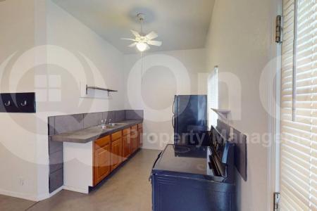 1/2 off 1st months rent. Charming studio apartment in Tucson. Full kitchen with all appliances. Spacious studio bedroom/living space. Maximizes space efficiency with it's open floor plan. The single bedroom,... spanning 340 sq. ft., features a ceiling fan and window for natural light. The kitchen area is equipped with wooden cabinets, a countertop, sink and black appliances including a refrigerator and stove. The bathroom boasts a tiled shower and floor, with a standard toilet. Throughout the apartment, concrete flooring and white walls create a modern, low-maintenance aesthetic. Ceiling fans in multiple rooms provide air circulation, while windows allow natural light to brighten the space. Great Tucson location with nearby schools, parks, dining and entertainment. Pet Policy: Dogs Allowed with the following exceptions: 1 dog will be considered upon approval. Application: $65 Application Fee Per Applicant 18 years or older (Nonrefundable). Once all required documents have been submitted by every applicant, please allow 24-72 business hours for processing. Move-in dates more than 21 days after application approval require additional approval. Lease Length: 12-month minimum (longer lease terms may be negotiable) Initial Move-In Costs: Applicants may choose between a traditional security deposit or a Security Deposit Alternative program. A one-time lease preparation fee of $250 plus the first month's rent is due prior to move-in. If the applicant has a pet, a $150 nonrefundable pet fee per pet applies. Recurring Monthly Costs: A 4.99% administration fee applies. All on Q Property Management residents are enrolled in the Resident Benefits Package for $49. This package includes liability insurance, credit building to help boost your credit score with timely rent payments, a move-in concierge to make utility connection and home service setup simple, a Renter to Buyer program and more. All information, including advertised rent and other charges, is deemed reliable but not guaranteed and is subject to change. Small Dogs Allowed, Large Dogs Allowed, Concierge, Microwave, Refrigerator, Ceiling Fan, Concrete, Tile & Stove. Listing provided by RentalSource. Read more