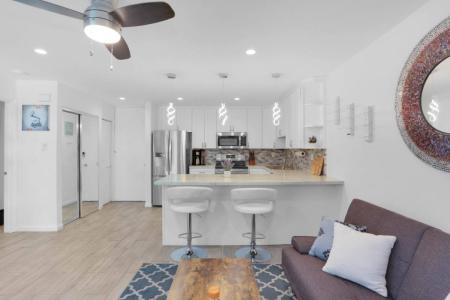 A luxury oasis awaits you in this 1 Br recently remodeled condo in a gated resort-style complex. This stylish coastal gem in Point Loma is only 2 miles to the beach and features an in-unit Washer/Dryer, updated... quartz countertops, stainless steel appliances, King bed, & picturesque views over the pool. Includes free assigned parking spot in a gated garage. Resort-style amenities include pools, hot tub, BBQ grills, on site gym, tennis courts, landscaped walking paths, & beach volleyball court. Elysian Pads Has Furnished Units Availble For Rent Across All of San Diego. Pricing subject to seasonality & availability. Air Conditioner, Additional Storage, Ceiling Fan, Controlled Access, Dishwasher, Disposal, Dryer, Framed Mirrors, Furnished, Hard Surface Counter Tops, Heat, Island Kitchen, Large Closets, Microwave, Pantry, Range, Refrigerator, Tile Flooring, Washer, Window Coverings & Dogs Allowed. Listing provided by RentalSource. Read more