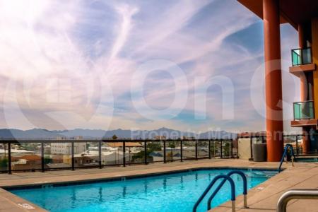 This rare dual-master condo on the 20th floor of The Summit at Copper Square offers stunning skyline views of Downtown Phoenix. Floor-to-ceiling windows and sleek, modern industrial finishes highlight the spacious... open layout, including a large patio that spans the length of the unit-perfect for enjoying city views. Both master bedrooms are generously sized, each with luxurious en-suite bathrooms, one featuring a soaking tub and double sinks. The space is thoughtfully designed with updated industrial touches, blending urban sophistication with comfort. Building Amenities Include: a rooftop lounge and firepit, pool and jacuzzi, fitness center, communal recreation room/clubhouse and 24-hour concierge. Dedicated underground spot for the unit - Car lift included to accommodate a second vehicle in the same space. Units in this building are rarely available, so this is a unique opportunity to enjoy premium downtown living with top-tier amenities. Pet Policy: Dogs and Cats Allowed with the following exceptions: Pets are considered - Maximum size is medium (up to 35 pounds). Application: $65 Application Fee Per Applicant 18 years or older (Nonrefundable). Once all required documents have been submitted by every applicant, please allow 24-72 business hours for processing. Move-in dates more than 21 days after application approval require additional approval. Lease Length: 12-month minimum (longer lease terms may be negotiable) Initial Move-In Costs: Applicants may choose between a traditional security deposit or a Security Deposit Alternative program. A one-time lease preparation fee of $250 plus the first month's rent is due prior to move-in. If the applicant has a pet, a $150 nonrefundable pet fee per pet applies. Recurring Monthly Costs: A 4.99% administration fee applies. All on Q Property Management residents are enrolled in the Resident Benefits Package for $49. This package includes liability insurance, credit building to help boost your credit score with timely rent payments, a move-in concierge to make utility connection and home service setup simple, a Renter to Buyer program and more. All information, including advertised rent and other charges, is deemed reliable but not guaranteed and is subject to change. Pet Friendly, Concierge, Fitness Center, Pool, Dishwasher, Washer, Dryer, Microwave, Refrigerator, Patio & Recreation Room. Listing provided by RentalSource. Read more