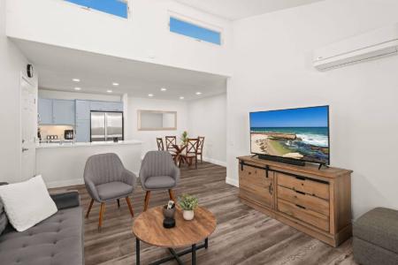Elevated, light-filled and move-in ready. This beautifully furnished second-story 3-bedroom, 2-bath condo in Clairemont offers refined comfort in an unbeatable convenient location. Soaring vaulted ceilings with... extra windows create an airy, open feel in the main living space, while a private balcony provides the perfect spot to unwind. The tastefully updated kitchen features modern finishes and flows effortlessly into the dining and living areas, all thoughtfully styled with crisp furnishings designed for a polished, professional lifestyle. With in-unit washer and dryer, gated parking, secure complex, multiple complex pools, spa, sauna, fitness room and outdoor BBQ areas, this long-term rental will feel like home from the moment you move in. A turnkey opportunity offering style, ease and ideally positioned just minutes from shopping, diverse eateries, UC San Diego Health and Rady Children's Hospital. Minimum Fico 675. Income Requirement 2.5X monthly rent. Pets may be considered with additional deposit. Utilities included. Available April 1, 6+ mo lease preferred. Air Conditioning, Blinds, Double Pane Windows, Dryer, Fitness Center, Furnished, Secure Access, Vaulted Ceilings, Washer, Dishwasher, Disposal, Microwave, Oven, Refrigerator, Access Gate, Community Pool, Community Sauna, Gym/Exercise Room, Jacuzzi & Pet Friendly. Listing provided by RentalSource. Read more