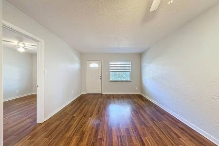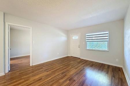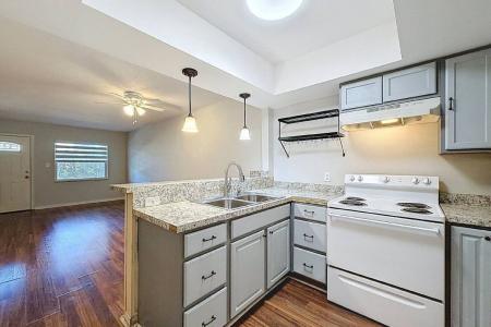 Spacious ground-floor condo featuring an open-concept layout and fresh paint throughout. The bright living and dining areas flow seamlessly into the kitchen, complete with a convenient breakfast bar that opens to... the main living space-perfect for both everyday living and entertaining. Wood-look vinyl flooring runs throughout the living areas, kitchen and bedroom, offering both style and durability. The oversized primary bedroom easily accommodates a king-size bed and features a generous walk-in closet. The bathroom is thoughtfully updated with a large granite-top vanity and a beautifully renovated shower with frameless glass doors and can be privately closed off from the separate water closet. Additional highlights include a dedicated laundry room with a full-size washer and dryer, as well as an extra storage closet. Ideally located just minutes from the premier Bardmoor and Bayou golf courses, Seminole City Center shopping, Lake Seminole Park and the beautiful Gulf Coast beaches, this well-designed condo offers the perfect blend of comfort and convenience. Lease Terms: Rent includes water, sewer and trash. Tenant is responsible for electric and cable/internet. Two-step application process: $65 application fee per occupant (18+) to the property manager, plus a $120 Condo Association application fee. Move-in requires first month's rent and security deposit upon approval. Available now. One pet under 20 lbs allowed with association approval. One assigned parking space only-no additional vehicles permitted per association rules. Washer and dryer are provided for tenant use but are not warrantied by the owner. Pet Friendly, Water, Garbage, Sewage, Washer, Dryer, Microwave, Range Oven, Refrigerator, Ceiling Fan, Window Coverings, Laundry Room, Master Bath, Laminate, Tile & Central. Listing provided by RentalSource. Read more