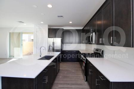 Available Now. 2,219 Sq Ft. 3 bedroom, 2.5 bath home in Mesa's Destination at Gateway East neighborhood. Thoughtful two-story floor plan with modern finishes throughout. Trendy eat-in kitchen with a breakfast... bar, pantry and included stainless steel appliances. Spacious living areas with sliding patio door access, perfect for entertaining. Neutral interior with carpet and tile flooring in all the right places. This home offers 4 nicely sized bedrooms each with ample closet space. Large primary suite features a full bath and walk-in closet. Flexible upstairs loft space. Laundry room with included washer and dryer. Enjoy a backyard with a covered patio and desert landscaping. 2 car garage. Located in the desirable Destination at Gateway East community. Community amenities include community pool. Great Mesa location with nearby schools, parks, dining and entertainment. Pet Policy: Dogs and Cats Allowed. Application: $65 Application Fee Per Applicant 18 years or older (Nonrefundable). Once all required documents have been submitted by every applicant, please allow 24-72 business hours for processing. Move-in dates more than 21 days after application approval require additional approval. Lease Length: 12-month minimum (longer lease terms may be negotiable) Initial Move-In Costs: Applicants may choose between a traditional security deposit or a Security Deposit Alternative program. A one-time lease preparation fee of $250 plus the first month's rent is due prior to move-in. If the applicant has a pet, a $150 nonrefundable pet fee per pet applies. Recurring Monthly Costs: A 4.99% administration fee applies. All on Q Property Management residents are enrolled in the Resident Benefits Package for $49. This package includes liability insurance, credit building to help boost your credit score with timely rent payments, a move-in concierge to make utility connection and home service setup simple, a Renter to Buyer program and more. All information, including advertised rent and other charges, is deemed reliable but not guaranteed and is subject to change. Pet Friendly, Concierge, Pool, Dishwasher, Washer, Dryer, Microwave, Refrigerator, Patio, Laundry Room, Pantry, Carpet & Tile. Listing provided by RentalSource. Read more