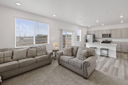 This 2 story home has open concept main level with beautiful kitchen featuring granite counter tops, stainless steel appliances, large island, walk out to back patio perfect for BBQs and entertaining. It opens to... the living room and also has a powder room on the main level. All bedrooms are on the upper level along with spacious laundry room that has electric washer/dryer connections. Private owners suite has beautiful on suite bath with double vanity, granite counter tops and large walk in closet. Additional full size bath room on upper level with 2 additional spacious bedrooms. The home also features good size 2 car garage, privacy fenced yard, covered front porch with access to walking trails, community parks, Grand Mountain k-8 school and easy access to Fort Carson, Space Force and I-25. Dishwasher, Disposal, Electric Stove, Island, Microwave, Oven, Refrigerator, Carpet, Laminate, Foyer, Laundry Room, Living Room, Primary Bath, Primary Bedroom, Air Conditioning, Blinds, Ceiling Fan, Washer Dryer Hookups, Window Coverings, Landscaping, Sprinkler System, Lawn & Pet Friendly. Listing provided by RentalSource. Read more