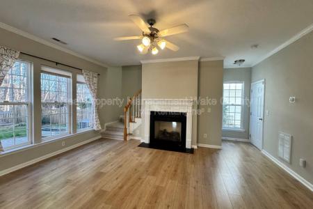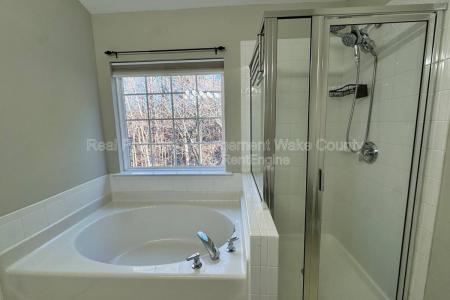 The Santa Special is here. Move in by 12/31/25 and unwrap $500 off your first month's rent. Welcome to this well-maintained 3-bedroom, 2.5-bath home in the Copper Creek community, offering a bright, open floor plan... with abundant natural light throughout. The updated kitchen features new stainless steel appliances, granite countertops and an expansive center island, providing both functionality and style. The living room includes a cozy gas-log fireplace and overlooks a private, fully fenced backyard with a large brick patio, raised garden beds and a wooded view. The upper level includes a spacious primary suite with vaulted ceilings, dual vanity sinks, a garden tub and a separate shower. A second guest bedroom features custom built-in bookshelves, ideal for a home office or flex space. Additional highlights include Lvp flooring throughout the main level, new carpet upstairs, a dedicated laundry room with washer and dryer included and an attached garage with extra storage. Community amenities include a pool, playground and picnic and grilling areas. Conveniently located off Woodcroft Parkway with easy access to major highways, Southpoint Mall, shopping, dining and grocery options. 12/18 Month Lease, Security Deposit and Lease Administration fee applies. Also check out our security deposit free option Via Obligo. Avoid Rental Scams: Real Property Management Wake County is a licensed Real Estate Agency that exclusively markets and represents this listing. We do not advertise on Craigslist. We would never ask you to wire money, request funds through a payment app for initial rent, deposits or take the key after your showing to move-in. Amenities: 2 Car Garage. Fenced Yard. Community Pool. Fenced Yard, Garden, Playground, Pool, Washer, Dryer, Fireplace, Patio, Vaulted Ceiling, Laundry Room, Office & Carpet. Listing provided by RentalSource.