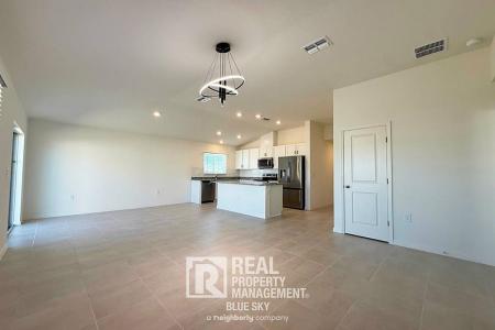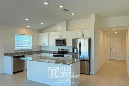 This brand new four bedroom, two bathroom home is located in a newly developed community with modern construction and efficient design. The home features tile flooring throughout, upgraded finishes and a functional... layout designed for everyday living. Community amenities including a clubhouse and pool are planned for completion later this year. A fenced backyard is scheduled to be installed in the coming months, offering additional outdoor space. Highlights. Brand new construction. Tile flooring throughout the home. Stainless steel appliances. French door refrigerator. Washer and dryer included. Modern ceiling fans in all rooms. Led lighting throughout. High efficiency water heater. Epoxy finished two car garage floor. Faux wood blinds throughout. Good sized backyard. Fence planned for installation in the coming months. Community. Newly developed community. Clubhouse and community pool planned for completion later this year. Tour Today. Tour the home today via our Self Guided touring system. What's Included. Washer and dryer. Security Deposit alternative available through Obligo. Terms. 12 month lease minimum. No Smoking. Renter's insurance is required. Resident Benefits Package is required ($40/month): Includes on time rent credit reporting, air filters, utility concierge service and access to resident rewards. Move in costs will include first month's rent, security deposit equal to one month's rent, $75 lease generation fee and pet fees if applicable. Last month's rent or increased deposit may be requested. Amenities: French Door Refrigerator. Washer & Dryer. Central air conditioning. Cats ok. Dogs ok. Tile Flooring. Two Car Garage. New Construction. Pet Friendly, Concierge, Pool, Dishwasher, Washer, Dryer, Garbage Disposal, Microwave, Range Oven, Refrigerator, Ceiling Fan, Large Closets, Laundry Room, Master Bath, Pantry, Tile, Heat Pump & Central. Listing provided by RentalSource. Read more