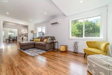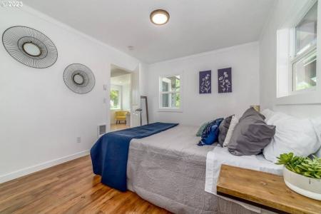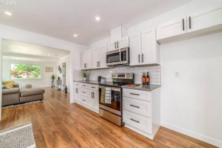 Prime Location. This stunning home is nestled in the heart of Eugene. Situated in the highly sought-after Jefferson Westside Neighborhood, this fully renovated home is a true gem. If you love hosting and... entertaining, this open-concept design facilitates effortless movement throughout the house. The spacious layout features a gleaming new kitchen with quartz countertops and a stylish tile backsplash. The bathrooms have been completely revamped and the house boasts laminate flooring, brand-new windows, fresh siding and a freshly painted interior and exterior. The living room is graced with elegant coved ceilings. Other notable features include a low-maintenance metal roof, ductless heating and cooling, updated plumbing and electrical systems. Step outside to the carport and a fenced yard. This fantastic property is conveniently close to downtown, shopping, dining, the University of Oregon, Jefferson Memorial Park, Charnel Mulligan Park and scenic bike paths. It's a must-see, offering a superb renovation that will surely impress. Washer/Dryer hookups. Tenants pay all utilities and are responsible for yard care. 11 month lease with option to renew. Dishwasher, Electric Stove, Refrigerator, Blinds, Washer Dryer Hookups, Fence, Lawn & Pet Friendly. Listing provided by RentalSource.