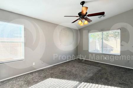 Available Now. Beautifully maintained, this 1,584 square foot single-story home offers a well-designed layout with 3 bedrooms and 2 bathrooms, creating a comfortable, move-in-ready living environment. Landscaping is... included. The kitchen is both inviting and functional with ample cabinetry, generous counter space and included appliances-stove/oven, refrigerator and dishwasher-arranged for easy daily use. The open living space is bright and welcoming, featuring a mix of carpet and tile flooring and a flexible layout ideal for entertaining or relaxing. Additional common areas flow naturally from the main living space, providing room for a dining area or multipurpose nook. The primary bedroom offers a private retreat with a walk-in closet and an ensuite bath, while two secondary bedrooms are nicely sized with good closet space and share a full bathroom, making them suitable for guests, family or a home office. The laundry room includes a washer and dryer and is complemented by centralized whole-home air conditioning for year-round comfort. A 2-car garage provides secure parking and storage. Outdoors, enjoy a fenced backyard with a covered patio, perfect for quiet evenings or casual gatherings. Located in the Sierra Montana Parcel 19 community within the Dysart Unified School District, this home is near local parks, dining, shopping and entertainment, with convenient access to Loop 303 for easy commuting throughout Surprise and the West Valley. Pet Policy: Dogs and Cats Allowed. Application: $65 Application Fee Per Applicant 18 years or older (Nonrefundable). Once all required documents have been submitted by every applicant, please allow 24-72 business hours for processing. Move-in dates more than 21 days after application approval require additional approval. Lease Length: 12-month minimum (longer lease terms may be negotiable) Initial Move-In Costs: Applicants may choose between a traditional security deposit or a Security Deposit Alternative program. A one-time lease preparation fee of $250 plus the first month's rent is due prior to move-in. If the applicant has a pet, a $150 nonrefundable pet fee per pet applies. Recurring Monthly Costs: A 4.99% administration fee applies. All on Q Property Management residents are enrolled in the Resident Benefits Package for $49. This package includes liability insurance, credit building to help boost your credit score with timely rent payments, a move-in concierge to make utility connection and home service setup simple, a Renter to Buyer program and more. All information, including advertised rent and other charges, is deemed reliable but not guaranteed and is subject to change. Pet Friendly, Concierge, Fenced Yard, Dishwasher, Washer, Dryer, Refrigerator, Fireplace, Patio, Family Room, Laundry Room, Office, Carpet, Tile, Stove & Central. Listing provided by RentalSource.