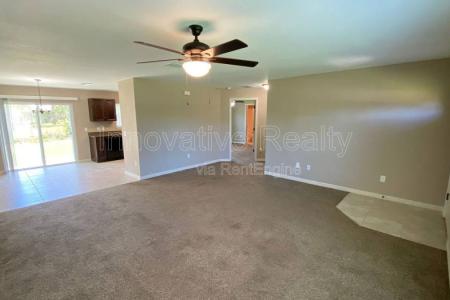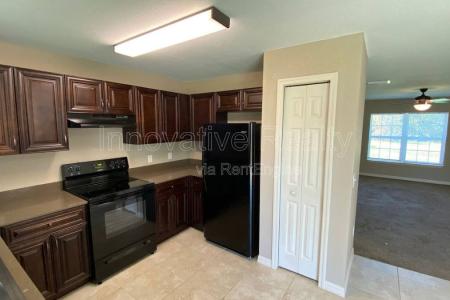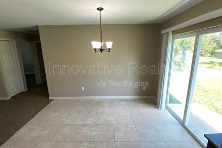 This is a 3-bedroom, 2-bath single family home with a two-car garage, situated on a large lot just across the street from a small lake. The entryway leads you directly into the main living area, which opens up onto... the dining area. The kitchen has a full suite of appliances including the refrigerator, oven and dishwasher. Enjoy plenty of countertop space and your kitchen sink overlooking your serene backyard. This split floor plan features a private feel with the separate master suite on one side of the home and both additional bedrooms on the other. Both additional bedrooms are well sized and have easy access to the full guest bath which features a shower tub combo. The master suite features a large walk in closet and private en suite bathroom with a standing shower. This home has plenty of natural light throughout as you will see continuing through to the backyard, the sliding glass doors lead you to your spacious backyard area. Perfect for enjoying the Florida weather. This home will not last on the market long. Innovative Realty residents are enrolled in the Resident Benefits Kit for $50/month which includes renters' insurance, HVAC air filter delivery (for applicable properties), utilities management, identity theft protection and much more. An admin fee of $195 will be due at move-in. We're happy to allow pets in this property, though we cannot allow more than two pets and they must be under 75 pounds. Our pet fee includes a $200 refundable deposit and a $150 non-refundable fee per pet. Sorry, no aggressive breeds. We run a comprehensive check of your criminal background, credit history, rental history. While we look at everything on a case by case basis, if you have certain prior felonies or any evictions your application may be denied. We require that our residents make at least three times the monthly rent and can provide proof of income and identity. Amenities: Ceiling Fans. Large Backyard. Two-car garage. Pet Friendly. Tile & Carpet Floors. Primary bathroom stand-in shower. Walk-in primary closet. Extended driveway. Pet Friendly, H O O K U P S, Dishwasher, Refrigerator, Ceiling Fan, Walk In Closet, Carpet & Tile. Listing provided by RentalSource. Read more