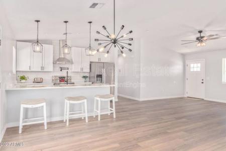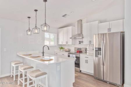 Available 8/1. Introducing your dream home in Tempe - a stunning 4-bed, 2-bath gem that has been lovingly and thoroughly Remodeled to perfection. Nestled in a prime location, this property seamlessly blends... simplicity with modern comfort to create a truly inviting and harmonious living space. Step inside and be captivated by the fabulous interior boasting a perfectly flowing open layout. The space is adorned with fresh, neutral paint and wood-look tile flooring. Greeted by vaulted ceilings and an abundance of natural light, this home feels airy and spacious, providing a sense of tranquility. French doors leading to the back not only bring the outdoors in but also create a seamless connection between the indoor and outdoor living areas. For the gourmet chef within you, the kitchen is a masterpiece. Equipped with sleek stainless steel appliances, quartz counters and a trendy subway tile backsplash, it's as functional as it is beautiful. The white shaker cabinets offer ample storage and the breakfast bar is a delightful spot for casual meals and entertaining. The thoughtfully designed layout ensures that each room has it's own special appeal. The main bedroom is a retreat in itself, complete with a full bathroom for your ultimate convenience and privacy. Rent - $3,200 + 2% tenant care fee. Refundable Security Deposit - $2,880.80. Nonrefundable Cleaning Fee - $319.20. Application Fee - $50. Admin Fee - $150. Colten Kowalski. (480)378-3978. E & G Real Estate Services. Pet Friendly, Vaulted Ceiling & Tile. Listing provided by RentalSource. Read more