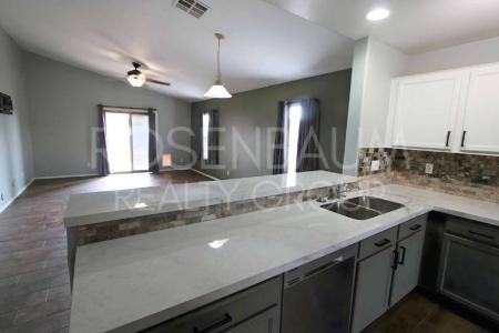 Welcome to this charming and beautifully maintained single-story home - a place where comfort, style and functionality unite. From the moment you walk through the front door, you're greeted by an open, airy... layout accentuated by vaulted ceilings that elevate the space and create a welcoming ambiance. The generous living area flows seamlessly into a kitchen that's both practical and stylish - equipped with modern stainless-steel appliances, abundant cabinetry, a handy pantry, sleek countertops and a cozy eat-in breakfast nook. A breakfast bar adds extra convenience and a touch of sophistication, making it an ideal spot for casual meals or morning coffee. When it's time to unwind, you'll retreat to one of three spacious bedrooms. New flooring and new carpet. The primary suite stands out with a roomy walk-in closet and an en-suite bath, offering privacy and comfort at the end of the day. A dedicated laundry area with a washer and dryer adds everyday convenience and a 2-car garage provides ample storage, parking and practicality. Step through the sliding glass doors off the living room and discover your private backyard sanctuary - a covered patio overlooks a thoughtfully landscaped outdoor space, ideal for relaxing, entertaining or enjoying quiet evenings under the stars. Because the home sits on a corner lot, you benefit from generous outdoor space and extra privacy. Location is a standout feature for this home. Nearby you'll find lush parks such as Palmateer Park as well as Estrella Mountain Regional Park - perfect for hiking, biking and enjoying nature. Shopping, dining and entertainment are readily available at popular hubs like Goodyear Marketplace and The Market at Estrella Falls, offering a range of restaurants, retail and leisure options. Close to schools and community amenities and for sports lovers, Goodyear Ballpark is just a short drive away. We welcome all furry friends of any size. Please make sure to submit all paperwork required to be approved within 24 hours & ask about our $0 security deposit Move-in Solution Fee option($85/month non-refundable). All adults 18+ must submit a completed rental application, government-issued photo Id, social security card & proof of income (last 30 days of pay stubs or for self-employed, most recent tax return and six months of bank statements). Applications can't be processed until all documents are received. The application fee is $60/adult (non-refundable). Only complete applications with all documentation, rental verification and fees paid will be considered on a first-come, first-served basis. Once approved, a holding agreement & earnest money of at least one month's rent must be submitted by the end of business day to secure & hold the property. Earnest money will be applied & credited toward the total required move-in funds. A 1x non-refundable $299 admin fee is due at lease signing. All application fees are Non-Refundable; please confirm propertyavailability before paying & applying. We love pets. All applicants must complete our third-party pet screening. No charge if you don't have a pet or have an ESA/assistive animal (documentation will be required). For pet owners, pet application fees are $30/pet via credit card & a $30 fee for additional pets ($25 via Ach). Pets receive a Paw Score, which determines monthly and move-in fees:#5- $45/mo & $299 at move in. #4- $55/mo & $299 at move in. #3- $65/mo & $299 at move in. #2- $75/mo & $399 at move in. #1- $85/mo & $500 at move in. All Rosenbaum Realty Group residents are enrolled in the $75 Resident Benefit Package, which includes HVAC air filter delivery(where applicable), credit building for timely rent payments, $1M Identity Protection, a utility concierge to simplify move-in connections, our top-tier resident rewards program and more. Security Deposit of 1.5x base rent + a 1x $350 maintenance coordination fee + a 1x $299 admin fee due at move-in. Monthly fees are: base rent, 2% monthly admin fee, $75 Rbp, partial utilities(if any). Dishwasher, Disposal, Granite Countertops, Microwave, Air Conditioning, Blinds, Ceiling Fan, Garage, Pantry, Carpet, Dining Room, Living Room, Walk In Closet(s), Playground, Barbecue Area & Pet Friendly. Listing provided by RentalSource. Read more
