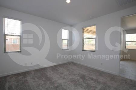 Available Now. 55+ Community. 1,459 Sq Ft. 2 bedroom, 2 bath home in Heritage Asante. 2023 build with modern upgrades & smart home features throughout. Desirable single story floor plan. Stunning eat-in kitchen... with included appliances, & expansive center island/breakfast bar. Open concept living/dining with sliding door patio access. Neutral interior with tile flooring in all the right places. This home offers 2 generously sized bedrooms, each with optimal privacy. Primary suite with full bath + walk-in closet. Blinds. Laundry room with included washer/dryer. Enjoy a low up keep backyard with covered patio. 2 car garage. Heritage Asante is a desirable 55+ community offering gated entry, community pool + spa, 9-hole putting course, dog parks, community lake, sports courts, fitness center, & biking/walking trails. Pet Policy: Dogs Allowed with the following exceptions: Up to 1 small dog Max will be considered upon approval. (11-25 lbs) Application: $65 Application Fee Per Applicant 18 years or older (Nonrefundable). Once all required documents have been submitted by every applicant, please allow 24-72 business hours for processing. Move-in dates more than 21 days after application approval require additional approval. Lease Length: 12-month minimum (longer lease terms may be negotiable) Initial Move-In Costs: Applicants may choose between a traditional security deposit or a Security Deposit Alternative program. A one-time lease preparation fee of $250 plus the first month's rent is due prior to move-in. If the applicant has a pet, a $150 nonrefundable pet fee per pet applies. Recurring Monthly Costs: A 4.99% administration fee applies. All on Q Property Management residents are enrolled in the Resident Benefits Package for $49. This package includes liability insurance, credit building to help boost your credit score with timely rent payments, a move-in concierge to make utility connection and home service setup simple, a Renter to Buyer program and more. All information, including advertised rent and other charges, is deemed reliable but not guaranteed and is subject to change. Small Dogs Allowed, Large Dogs Allowed, Concierge, Fenced Yard, Fitness Center, Gated Entry, Pool, Sports Court, Dishwasher, Washer, Dryer, Microwave, Refrigerator, Patio, Laundry Room, Pantry, Tile & Stove. Listing provided by RentalSource. Read more