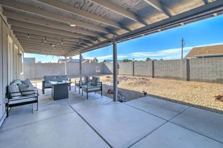 Step into sustainable luxury living with this stunning remodeled single-level home, boasting 3 bedrooms and 2 bathrooms. The sleek and modern design welcomes you into an open floor plan, where stainless steel... appliances adorn the gourmet kitchen, perfect for culinary enthusiasts. Embrace eco-conscious living with the added benefits of solar panels and dual pane windows, ensuring energy efficiency and lower utility bills, allowing you to relish in both comfort and savings. Relaxation awaits in the expansive master suite featuring a spacious walk-in closet, dual sinks and a luxurious walk-in shower, adding a touch of indulgence to your daily routine. Entertain effortlessly in the generously sized living areas that flow seamlessly to a huge covered patio, ideal for al fresco dining or simply enjoying the serene outdoor ambiance. Experience the epitome of comfort, elegance and eco-friendly living in this meticulously designed rental property. Monthly Recurring Charges: $2,400 Rent. $120 Solar Charge. $10 Monthly Admin Fee. One time charges: $350 Non-refundable Cleaning Fee. $250 Non-refundable Pet Fee (per pet, if applicable) $150 One Time Admin Fee. Security Deposit 1-1.5x rent. Amenities: Disposal. Cable-ready. Washer/Dryer In Unit. Dishwasher. Pets Allowed. Unfurnished. 2 Car Garage. Air Conditioning. Microwave. Family Room. Carpet. Tile. Rock Front. Oven / Range. Refrigerator. Single level. Covered Patio. Washer/Dryer Hookup. Private Backyard. Oven. Washer Included. Dryer Included. Refrigerator Included. Patio. Built-in Microwave. Range/oven. Walk-in closet. Washer/dryer included. Near Shopping. Attached Garage. Near Schools. Blinds. Washer. Dryer. Fenced Yard. Storage. Stove. All Electric. Low Maintenance Landscaping. Desert Landscaping. Gravel Frontyard. Inside Laundry. Laundry Room. Stainless Steel Appliances. Upgraded Counters. Walk in Shower. Dual Sinks. Dual Master Vanity. Ceiling Fans. Garbage Disposal. Tile Floors. Range - Electric. Corner Lot. Solar. Solar Panels. Gravel Backyard. Eat-In Kitchen. Freeway Access. Shower/Tub Combo. East/West Exposure. Breakfast Bar. Water Heater - Electric. Double Sinks. Walk-in Closet. Energy Star Windows. Dual pane windows. Near Parks. Remodeled. Near Dining. Single-story. Formal Dining. Pet Friendly, Fenced Yard, Lawn, Porch, Dishwasher, Washer, Dryer, Garbage Disposal, Microwave, Range Oven, Refrigerator, Ceiling Fan, Double Pane Windows, Large Closets, Patio, Storage Space, Window Coverings, Breakfast Nook, Dining Room, Family Room, Laundry Room, Master Bath, Pantry, Walk In Closet, Carpet, Laminate, Tile, Forced Air, Heat Pump, Stove, Central & Solar. Listing provided by RentalSource. Read more