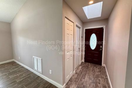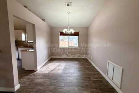 Available Now. Beautifully maintained 3-bedroom, 2-bath home for rent in the Tiffany Pines community, offering approximately 1,300 square feet of comfortable living space on a spacious end lot. Upon entry,... wood-plank tile flooring flows seamlessly throughout the home. The floor plan includes a separate formal dining room and a bright, open-concept living area with a large living room and a cozy corner fireplace-perfect for relaxing or entertaining. The kitchen is well appointed with white cabinetry, granite countertops and stainless steel appliances. The primary bedroom, accessed through double doors, is generously sized and features a walk-in closet. The en-suite bathroom includes an updated vanity and a walk-in tile shower. Two additional guest bedrooms share a full guest bathroom. Additional highlights include an outdoor storage shed for extra convenience and a deck located just off the living room, providing easy access to the backyard. Dogs are welcomed upon approval and with a pet fee. Tenant is responsible for all lawn maintenance. No co-signors or guarantors permitted. No roommates. We have a Strict No Smoking or Vaping are permitted in or on the property. Nest Finders will not lease sight unseen. Applicant must view property in person in order to lease it. Screening includes credit/criminal background check, income verification of 3x the monthly rent and rental history verification. Tenant Charges: Application Fee - $80 per adult. Lease Initiation Admin Fee - $150 after approval and upon signing. Resident Benefits Package (rbp) - $42 per month (not optional) Security Deposit - 1-2 x the monthly Rent depending on property requirement and application score (fully refundable) Pet fees as listed (if applicable) 13 month lease term. Pets (if accepted on a property): $300-$500 Pet Fee per pet and additional pet rent per pet $30-$75/mo based on Pet screenings - Paw score. No resident or residents at any one premises shall at any one time own, harbor or license more than Two total animals in any combination. Up to Two Pets Maximum on approved properties. The pet application fee is $20 for the first pet, $15 for each additional pet. $80 per adult non refundable Application Fee Per adult to be paid at the time of application. Please Review application criteria and Deposit Info before applying. All applicants must complete the pet screening whether or not you have a pet. We process all applications and the first application that completes all the paperwork requirements and criteria will be processed first. Nest Finders Property Management. 9889 Gate Pkwy N, #402. Jacksonville, FL 32246. Small Dogs Allowed, Large Dogs Allowed, Deck, Lawn, Dishwasher, Microwave, Range Oven, Refrigerator, Fireplace, Patio, Dining Room, Tile, Forced Air & Central. Listing provided by RentalSource.