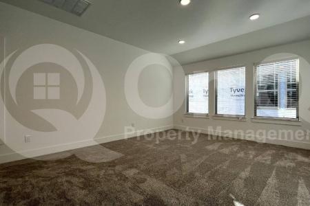 Available Now. 2,931 Sq Ft. 4 bedroom, 3.5 bath home in Denton's Stark Farms. 2023 build with modern upgrades + smart home features throughout. Thoughtful two-story floor plan. Trendy eat-in kitchen with... included appliances, & large center island/breakfast bar. Off kitchen dining space. Kitchen opens to spacious family room, great for entertaining. Neutral interior with wood-like flooring in all the right places. This home offers 4 generously sized bedrooms + flexible den space. Den makes great home office/bonus room with french door entry. Downstairs primary suite with full bath + walk-in closet. Upstairs secondary bedrooms, each with optimal privacy. Ceiling fans. Enjoy an oversized backyard with covered patio, & grass landscaping. 2 car garage. Installed Ev Charger. Stark Farms is a well maintained community with biking/walking trails throughout. Great Denton location with easy SH-288 access. Pet Policy: Dogs and Cats Allowed with the following exceptions: Pets will be considered upon approval. Application: $65 Application Fee Per Applicant 18 years or older (Nonrefundable). Once all required documents have been submitted by every applicant, please allow 24-72 business hours for processing. Move-in dates more than 21 days after application approval require additional approval. Lease Length: 12-month minimum (longer lease terms may be negotiable) Initial Move-In Costs: Applicants may choose between a traditional security deposit or a Security Deposit Alternative program. A one-time lease preparation fee of $250 plus the first month's rent is due prior to move-in. If the applicant has a pet, a $150 nonrefundable pet fee per pet applies. Recurring Monthly Costs: A 4.99% administration fee applies. All on Q Property Management residents are enrolled in the Resident Benefits Package for $49. This package includes liability insurance, credit building to help boost your credit score with timely rent payments, a move-in concierge to make utility connection and home service setup simple, a Renter to Buyer program and more. All information, including advertised rent and other charges, is deemed reliable but not guaranteed and is subject to change. Pet Friendly, Concierge, Fenced Yard, Dishwasher, Microwave, Refrigerator, Ceiling Fan, Patio, Family Room, Laundry Room, Office & Pantry. Listing provided by RentalSource. Read more