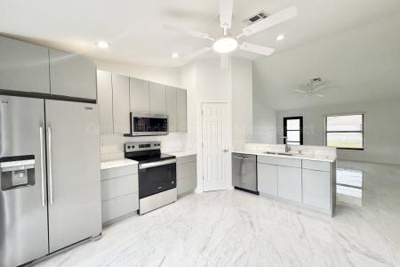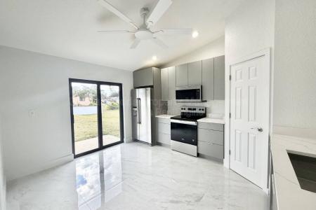 This fully renovated 3-bedroom, 2-bath home is available for immediate move-in. All new inside with marble-looking, large-profile porcelain flooring, new exterior paint, new tin roof, freshly painted, new kitchen... and bathroom cabinets, Led lighted bath mirrors, plus a vast, partially fenced corner lot and a two-car garage. All new windows and doors, including the garage door. Conveniently located in the community of Deltona Lakes, this property features an open, comfortable split floor plan with well-proportioned bedrooms and bathrooms, a lovely new kitchen with ample counter and cabinet space and many desirable features. Act now. This one won't last long. All applicants are required to do a credit and background check. Renters' insurance is required. Pet Friendly. Listing provided by RentalSource.