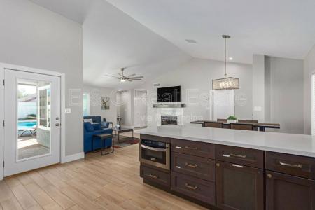 Welcome to your dream home. This stunning, furnished 3-bedroom, 2-bathroom residence has been beautifully upgraded for modern living. Step into an open, airy floorplan where a spacious great room features vaulted... ceilings, warm wood-look tile flooring and a decorative fireplace that creates a cozy ambiance. The gourmet kitchen will delight any chef with custom cabinetry, ample storage and countertop space, stainless steel appliances, a convenient pot filler and a large breakfast bar perfect for entertaining. The luxurious primary suite is a true retreat, complete with a large walk-in closet, spa-like bathroom featuring a massive tiled walk-in shower and private access to the backyard. Outside, unwind on the extended patio or by the sparkling pool with pool service included. Solar panels cost just $200/month - enjoy significant energy savings. WiFi must remain active for solar panel use. Fireplace is decorative and not for use. Rent - $2,795/mo + 2% tenant care fee. Solar Panel System - $200/mo. WiFi - $75/mo. Refundable Security Deposit - $2,486.80. Nonrefundable Cleaning Fee - $308.20. Application Fee - $50. Admin Fee - $150. Colten Kowalski. 480-378-3978. E & G Real Estate Services. Amenities: Pool. Furnished. Pet Friendly, Pool, Fireplace, Patio, Vaulted Ceiling, Tile & Solar. Listing provided by RentalSource.