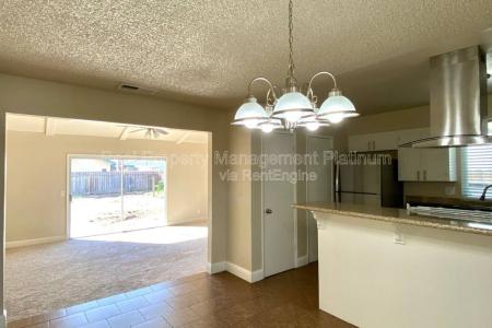 3 Bedroom - 2 Bathroom - 1,268 sq. ft - Built in 1973. Tile in entry, dining room and kitchen. Carpet in great room and bedrooms. Kitchen has granite countertops, breakfast bar and two pantries. Stainless appliances... include gas stove, dishwasher and refrigerator. Great room has vaulted ceilings and big sliding door out to the backyard. Guest bathroom has granite counters and bathtub/ shower combo. Main bedroom has a ceiling fan and nice windows for natural lighting. Main bathroom has granite counters and shower. 2 additional bedrooms with ceiling fans. Large backyard with cement and citrus trees. Attached 2 car garage has gas/electric washer and dryer hookups. Tenant in charge of yard care. Small pet considered with additional deposit & pet rent. No smoking. Credit score above 650 Required. Across From Tarpey Elementary. Clovis Unified School District. Renter's insurance is required. Dre#01901101. All information is deemed reliable but not guaranteed and is subject to change. Amenities: Non Smoking. Renters Insurance Required. Pet Friendly, H O O K U P S, Dishwasher, Washer, Dryer, Refrigerator, Ceiling Fan, Vaulted Ceiling, Dining Room, Office, Carpet, Tile & Stove. Listing provided by RentalSource. Read more