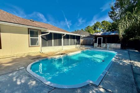 Pool Home. Welcome to this inviting 4-bedroom, 2-bath single-family home offering comfort and functionality of a livable space, the interior features a bright, open layout highlighted by vaulted ceilings, tile... flooring and brand new carpet in the bedrooms. The kitchen is equipped with a full suite of appliances-including refrigerator, electric oven, microwave, freezer. Home also has a washer and dryer. Step outside to enjoy the in-ground pool, perfect for relaxing or entertaining. Parking is effortless with an attached two-car garage and a long driveway for extra space. New lighting and fixtures throughout. Pool service is included in the rental price. Pet-friendly. Resident Charges: Application Fee: $85 for each adult over the age of 18 (non-refundable) Lease Prep Fee: $150 for approved applicants only. Resident Benefits Package (rbp): $55 per month (required) Security Deposit: For most applicants, the security deposit is equal to one month's rent. A higher security deposit may be required based on an applicant's credit history. The security deposit is fully refundable. Pets: Pet Friendly. Dishwasher, Disposal, Electric Stove, Microwave, Refrigerator, Carpet, Ceramic Tile, Primary Bath, Primary Bedroom, Swimming Pool, Dining Room, Foyer, Living Room, Air Conditioning, Blinds, Ceiling Fan, Double Pane Windows, Dryer, Electric Heat, Garage, Screened Porch, Walk In Closet(s), Washer, Fence, Lawn, Patio, Shed & Pet Friendly. Listing provided by RentalSource.