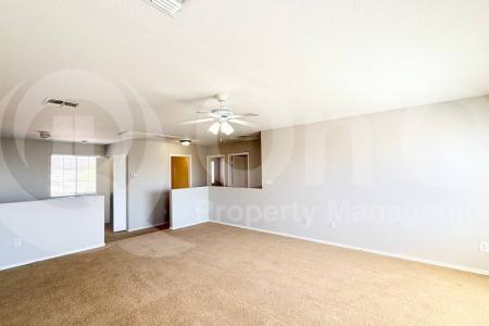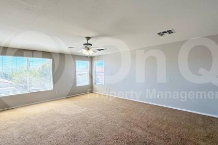 Available Now. This spacious 1,519 square foot two-story home features 4 bedrooms and 2 bathrooms with a thoughtful floor plan in Buckeye's desirable Sundance community. The eat-in kitchen boasts an expansive... breakfast bar that opens seamlessly to the spacious living room, creating an ideal space for entertaining and daily living. The open living and dining areas showcase tile flooring in all the right places, complemented by a neutral palette throughout. The downstairs primary suite offers convenience and privacy with a full bathroom and walk-in closet, while the flexible upstairs loft provides additional living space for a home office, playroom or relaxation area. Three generously sized secondary bedrooms are located upstairs along with a convenient laundry room that includes washer and dryer. The home features practical amenities including air conditioning, blinds, a pantry for extra storage and a garage door opener. Outside, the low-maintenance backyard offers a covered patio with extended pavers, perfect for outdoor dining and relaxation, all within a fenced yard for privacy. The 2-car garage provides covered parking and additional storage space. Located in the Sundance neighborhood, residents enjoy access to parks and trails for outdoor recreation. Small pets are welcome with approval for those 10-15 pounds, making this home perfect for pet-loving families seeking comfort and convenience in a well-established Buckeye community. Pet Policy: Dogs and Cats Allowed. Application: $65 Application Fee Per Applicant 18 years or older (Nonrefundable). Once all required documents have been submitted by every applicant, please allow 24-72 business hours for processing. Move-in dates more than 21 days after application approval require additional approval. Lease Length: 12-month minimum (longer lease terms may be negotiable) Initial Move-In Costs: Applicants may choose between a traditional security deposit or a Security Deposit Alternative program. A one-time lease preparation fee of $250 plus the first month's rent is due prior to move-in. If the applicant has a pet, A $150 refundable pet deposit per pet applies. Recurring Monthly Costs: A 4.99% administration fee applies. All on Q Property Management residents are enrolled in the Resident Benefits Package for $49. This package includes liability insurance, credit building to help boost your credit score with timely rent payments, a move-in concierge to make utility connection and home service setup simple, a Renter to Buyer program and more. All information, including advertised rent and other charges, is deemed reliable but not guaranteed and is subject to change. Pet Friendly, Concierge, Fenced Yard, Dishwasher, Washer, Dryer, Refrigerator, Patio, Storage Space, Family Room, Laundry Room, Office, Pantry & Tile. Listing provided by RentalSource. Read more