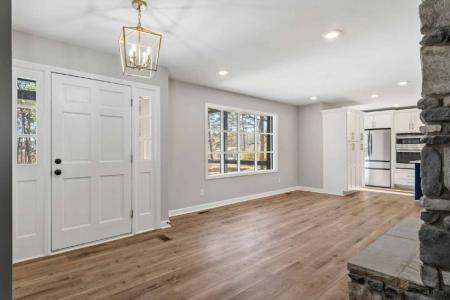 Featuring a picturesque setting, 240 Forestwood Park Rd in Sanford, Nc, is a charming haven that promises comfort and tranquility. This tastefully renovated 3-bedroom, 2-bathroom ranch home spans 1,475 square feet,... offering ample space for relaxation and entertainment. As you step inside, you'll be greeted by a delightful atmosphere and gorgeous luxury vinyl plank flooring that seamlessly blends style and functionality. The open floor plan centered around a dual-sided stone fireplace creates a spacious ambiance, perfect for both quiet evenings and lively gatherings. The chef-inspired kitchen features a farm house sink, stainless steel appliances, quartz countertops, ample storage and an oversized island. Walk down the hallway to the three bedrooms that are designed with comfort in mind, providing a serene retreat at the end of the day. The full bathrooms are elegantly appointed ensuring a refreshing start to your mornings. With two covered oversized porches, a large open back deck, situated on over an acre lot and surrounded by nature's beauty, this home offers the perfect balance of privacy, tranquility and an ideal spot for those who cherish outdoor adventures and peaceful strolls. Discover the perfect blend of comfort and convenience in this Sanford gem, ready to welcome you. Tenant responsible for all utilities and lawn maintenance. No smoking of any kind on property. Washer/Dryer provided in laundry room. Renters insurance required. One dog or cat accepted with monthly pet rent. Application requirements: income 3x the month's rent, clean credit history over 595+ and clean rental history. Dishwasher, Electric Stove, Island, Microwave, Oven, Refrigerator & Pet Friendly. Listing provided by RentalSource. Read more