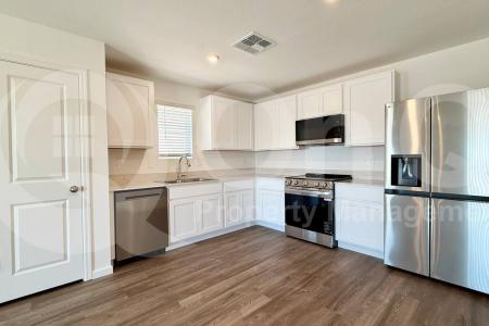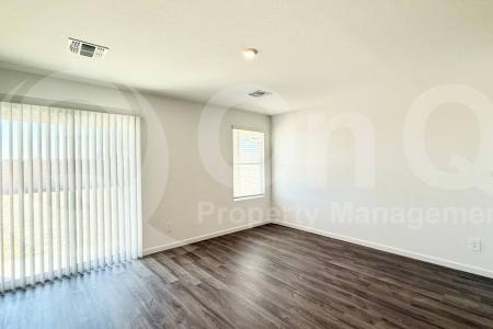 This brand-new, bright, open single-story home offers 1,290 sq ft of thoughtfully designed living space with 3 bedrooms and 2 bathrooms in the growing Mayfield neighborhood of Buckeye. The modern kitchen features... stainless steel appliances including refrigerator, dishwasher, microwave and oven, paired with a convenient pantry, perfect for family meals and entertaining. Sun-filled living spaces flow seamlessly throughout, highlighted by a mix of carpet, tile and wood flooring that creates a warm, inviting atmosphere. The primary suite provides a private retreat with a spacious walk-in closet and a well-appointed ensuite, while two additional bedrooms offer versatile space for family, guests or a home office with ample closet storage and a shared bath. Laundry is effortless with an in-unit washer and dryer, complemented by centralized air conditioning and natural gas heating for year-round comfort. An attached 2-car garage with opener provides secure, convenient parking and the fenced backyard offers a private outdoor space for pets or summer gatherings. Located in Mayfield, residents enjoy quick access to Sundance Elementary, Buckeye Middle School and Buckeye High, nearby parks, shopping, dining options and easy commutes via I-10 to the greater Phoenix area. Pet Policy: Dogs and Cats Allowed. Application: $65 Application Fee Per Applicant 18 years or older (Nonrefundable). Once all required documents have been submitted by every applicant, please allow 24-72 business hours for processing. Move-in dates more than 21 days after application approval require additional approval. Lease Length: 12-month minimum (longer lease terms may be negotiable) Initial Move-In Costs: Applicants may choose between a traditional security deposit or a Security Deposit Alternative program. A one-time lease preparation fee of $250 plus the first month's rent is due prior to move-in. If the applicant has a pet, a $150 nonrefundable pet fee per pet applies. Recurring Monthly Costs: A 4.99% administration fee applies. All on Q Property Management residents are enrolled in the Resident Benefits Package for $49. This package includes liability insurance, credit building to help boost your credit score with timely rent payments, a move-in concierge to make utility connection and home service setup simple, a Renter to Buyer program and more. All information, including advertised rent and other charges, is deemed reliable but not guaranteed and is subject to change. Pet Friendly, Concierge, Dishwasher, Washer, Dryer, Microwave, Refrigerator, Office, Pantry, Carpet, Tile & Central. Listing provided by RentalSource. Read more