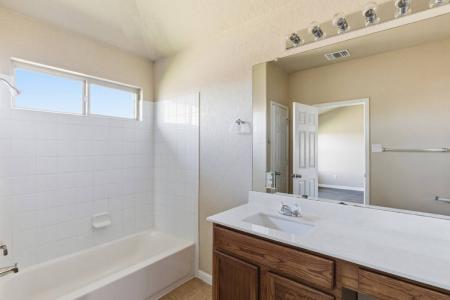 Clean, modern single-story home with no carpet throughout, featuring ceramic tile and luxury vinyl plank flooring. The kitchen includes granite countertops, a breakfast bar, gas stove/oven, built-in microwave and... dishwasher, plus recessed lighting. The primary suite features a walk-in closet and a bath with single vanity and tub/shower combo. A second full bath also includes a tub/shower combo. Additional features include a laundry room with washer and dryer connections, security system available for tenant use, automatic garage openers, sprinkler system and 2-inch faux wood blinds. Enjoy a covered back patio and fenced backyard. Located in New Braunfels Isd. Pet Friendly. Listing provided by RentalSource. Read more