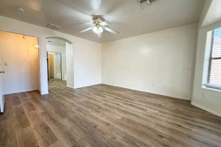 Welcome to your beautifully maintained one-story home in the heart of Sundance Ranch. This spacious 4-bed, 2-bath residence sits on a generous 0.21-acre lot and features abundant natural light, vaulted ceilings and... new vinyl flooring throughout for easy living and low maintenance. The vaulted ceilings provide tons of natural light and the open floorplan flows seamlessly to a large, private backyard enclosed by a high wall - perfect for outdoor entertaining or quiet relaxation. Enjoy being located directly across from a community park and playground, ideal for families and outdoor fun. With an attached 2-car garage, community HOA amenities and proximity to local schools, this home combines comfort, convenience and community living in a desirable Phoenix neighborhood. Dishwasher, Disposal, Electric Stove, Microwave, Oven, Pantry, Dining Room, Laundry Room, Living Room, Primary Bath, Primary Bedroom, Air Conditioning, Blinds, Ceiling Fan, Double Pane Windows, Electric Heat, Garage, Vaulted Ceilings, Washer Dryer Hookups, Window Coverings, Fence, Landscaping, Patio, Barbecue Area, Basketball Court, Playground & Pet Friendly. Listing provided by RentalSource. Read more