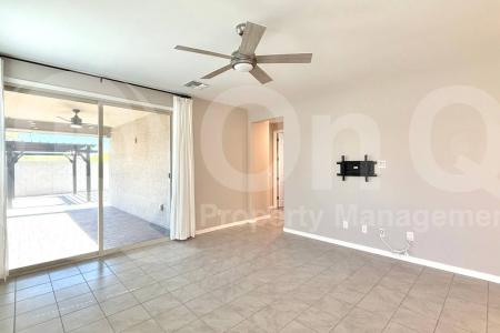 Available Now. This spacious 1,859 square foot single-story home features 4 bedrooms and 2 bathrooms in the desirable Rancho Cabrillo community of Peoria. The modern kitchen comes fully equipped with stainless steel... appliances including refrigerator, dishwasher, microwave and oven, plus a convenient breakfast bar and walk-in pantry for ample storage. The open-concept living area boasts abundant natural light, ceiling fans and flows seamlessly into the dining room, creating an ideal space for both daily living and entertaining. A dedicated laundry room houses the included washer and dryer with additional storage space. The primary bedroom offers a peaceful retreat with a walk-in closet and ensuite bathroom, while two additional bedrooms provide flexibility for guests, home office or family needs. The second full bathroom serves the common areas and guest bedrooms perfectly. A spacious 3-car garage provides exceptional parking and storage options with automatic garage door opener. Step outside to your private backyard oasis featuring a sparkling swimming pool, covered patio for outdoor dining and relaxation and a fully fenced grass yard offering both privacy and low-maintenance landscaping. Additional home features include energy-efficient solar panels, air conditioning, tile and carpet flooring throughout and custom blinds for privacy and light control. Located in Peoria with convenient access to parks, trails, shopping and dining, this 2020-built home combines modern comfort with resort-style amenities in a family-friendly neighborhood setting. Pet Policy: Dogs and Cats Allowed with the following exceptions: Upon owner approval. Application: $65 Application Fee Per Applicant 18 years or older (Nonrefundable). Once all required documents have been submitted by every applicant, please allow 24-72 business hours for processing. Move-in dates more than 21 days after application approval require additional approval. Lease Length: 12-month minimum (longer lease terms may be negotiable) Initial Move-In Costs: Applicants may choose between a traditional security deposit or a Security Deposit Alternative program. A one-time lease preparation fee of $250 plus the first month's rent is due prior to move-in. If the applicant has a pet, a $150 nonrefundable pet fee per pet applies. Recurring Monthly Costs: A 4.99% administration fee applies. All on Q Property Management residents are enrolled in the Resident Benefits Package for $49. This package includes liability insurance, credit building to help boost your credit score with timely rent payments, a move-in concierge to make utility connection and home service setup simple, a Renter to Buyer program and more. All information, including advertised rent and other charges, is deemed reliable but not guaranteed and is subject to change. Pet Friendly, Concierge, Fenced Yard, Pool, Dishwasher, Washer, Dryer, Microwave, Refrigerator, Ceiling Fan, Patio, Storage Space, Dining Room, Laundry Room, Office, Pantry, Carpet, Tile & Solar. Listing provided by RentalSource. Read more