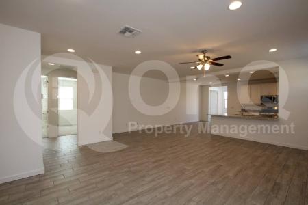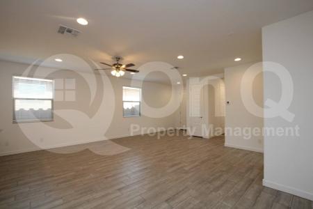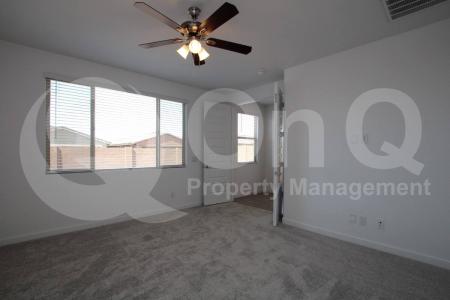 Available Now. 1,797 Sq Ft. 4 bedroom, 2 bath home in Phoenix. 2023 build with trendy modern palette. Desirable single story floor plan with welcoming great room entry. Stunning eat-in kitchen with stainless steel... appliances, & expansive breakfast bar. Open concept living/dining, great for entertaining. Neutral interior with wood-like flooring in all the right places. This home offers 4 generously sized bedrooms. Primary suite with full bath + walk-in closet. Secondary bedrooms each with optimal privacy. Blinds + ceiling fans. Enjoy a low up keep backyard with covered patio. 2 car garage. Liberty is a well maintained community offering gated entry, playgrounds, & biking/walking trails. Great Phoenix location with easy I-10 + Loop-202 access. Pet Policy: Dogs Allowed with the following exceptions: Dogs will be considered upon approval. Application: $65 Application Fee Per Applicant 18 years or older (Nonrefundable). Once all required documents have been submitted by every applicant, please allow 24-72 business hours for processing. Move-in dates more than 21 days after application approval require additional approval. Lease Length: 12-month minimum (longer lease terms may be negotiable) Initial Move-In Costs: Applicants may choose between a traditional security deposit or a Security Deposit Alternative program. A one-time lease preparation fee of $250 plus the first month's rent is due prior to move-in. If the applicant has a pet, a $150 nonrefundable pet fee per pet applies. Recurring Monthly Costs: A 4.99% administration fee applies. All on Q Property Management residents are enrolled in the Resident Benefits Package for $49. This package includes liability insurance, credit building to help boost your credit score with timely rent payments, a move-in concierge to make utility connection and home service setup simple, a Renter to Buyer program and more. All information, including advertised rent and other charges, is deemed reliable but not guaranteed and is subject to change. Small Dogs Allowed, Large Dogs Allowed, Concierge, Fenced Yard, Gated Entry, Playground, Dishwasher, Microwave, Refrigerator, Ceiling Fan, Patio, Laundry Room, Pantry & Stove. Listing provided by RentalSource. Read more