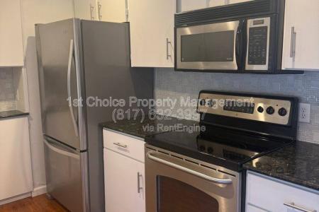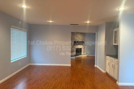 This well-maintained 3-bedroom, 2-bathroom single-story home in Bedford is truly move-in ready. The home features a split layout with two spacious living areas, both ideal for entertaining, with one showcasing a... beautiful full-wall brick fireplace. The kitchen offers granite countertops, stainless steel appliances, microwave and a refrigerator for added convenience. Window coverings are installed throughout the home and a washer and dryer are included. The primary bedroom suite features the same attractive wood flooring found throughout the main living areas, creating a warm and cohesive feel. The low-maintenance backyard includes charming wood decks just off the kitchen and the primary bedroom-perfect for relaxing or enjoying outdoor gatherings. Located within the highly regarded Hurst-Euless-Bedford Isd. Small Pets Only. Conveniently located with easy access to major highways and DFW Airport, this home offers both comfort and convenience. This one won't last long-schedule your showing today. Amenities: Washer and Dryer. Disposal and Microwave. Stove/Oven. Water Heater. Fireplace. Pet Friendly, Deck, Washer, Dryer, Microwave, Refrigerator, Fireplace, Window Coverings & Stove. Listing provided by RentalSource. Read more