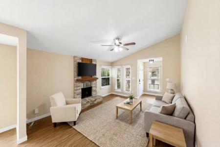 New Rental Alert. Ready Now. From the moment you arrive, the freshly repainted exterior sets a welcoming tone, hinting at the care and attention that continues throughout the home. Step inside and feel the calm that... comes from clean lines, updated finishes and a layout that simply works for real life. Luxury vinyl plank flooring flows throughout the home, giving you the freedom to enjoy morning coffee, playful afternoons and quiet evenings without worry. The heart of the home is the kitchen, where new cabinets, granite countertops and an elegant backsplash create a space that invites connection. Picture preparing dinner while sharing stories from the day, the stainless steel electric range and modern appliances making every meal feel effortless. Undermount sinks and thoughtful details add a sense of refinement you will appreciate every day. The living area centers around a cozy fireplace, perfect for unwinding after a long day or gathering together on cooler evenings. Ceiling fans keep the home comfortable year round, while natural light enhances the feeling of openness and warmth. Three well proportioned bedrooms offer flexibility for restful nights, productive workdays or creative spaces that adapt to your lifestyle. The Jack and Jill bathroom adds convenience and privacy, making mornings smoother and evenings more relaxed. A washer and dryer located in the garage simplify daily routines, while the garage door opener adds ease to coming and going. Beyond the front door, enjoy access to top tier amenities that elevate your lifestyle. Start your mornings with a walk to the pool, spend weekends at the playground with laughter in the air, gather with friends at the pavilion or enjoy an active afternoon on the tennis courts. This is a community designed for connection, recreation and balance. This home is more than a place to live. It is a space where daily moments feel lighter, routines feel smoother and memories are waiting to be made. Dishwasher, Disposal, Electric Stove, Microwave, Oven, Pantry, Refrigerator, Ceramic Tile, Foyer, Living Room, Primary Bath, Primary Bedroom, Air Conditioning, Ceiling Fan, Fireplace, Garage, Storage, Washer Dryer Hookups, Fence, Lawn, Playground & Pet Friendly. Listing provided by RentalSource. Read more