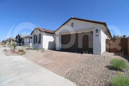 2,200 Sq Ft. 4 bedroom, 3 bath house in Maricopa's Rancho El Dorado. Desirable single story floor plan with modern finishes throughout. Trendy eat-in kitchen with large breakfast bar, walk-in pantry and stainless... steel appliances including range/wall oven. Open concept living/dining with sliding patio door access, great for entertaining. Neutral interior with wood like/carpet flooring in all the right places. This home has 4 nicely sized bedrooms with ample closet space. Primary bedroom has a split floor plan for optimal privacy. Features include a full bath with walk-in shower, double vanity sink, wide walk-in closet and linen closet. Blinds+ceiling fans. Laundry room with included washer/dryer. Enjoy a low upkeep backyard with a covered patio. Rancho El Dorado is a well maintained community with biking/walking paths and playgrounds. Great Maricopa location close to Sr 347. Pet Policy: Dogs and Cats Allowed with the following exceptions: 1 pet will be considered upon approval. Application: $65 Application Fee Per Applicant 18 years or older (Nonrefundable). Once all required documents have been submitted by every applicant, please allow 24-72 business hours for processing. Move-in dates more than 21 days after application approval require additional approval. Lease Length: 12-month minimum (longer lease terms may be negotiable) Initial Move-In Costs: Applicants may choose between a traditional security deposit or a Security Deposit Alternative program. A one-time lease preparation fee of $250 plus the first month's rent is due prior to move-in. If the applicant has a pet, a $150 nonrefundable pet fee per pet applies. Recurring Monthly Costs: A 4.99% administration fee applies. All on Q Property Management residents are enrolled in the Resident Benefits Package for $49. This package includes liability insurance, credit building to help boost your credit score with timely rent payments, a move-in concierge to make utility connection and home service setup simple, a Renter to Buyer program and more. All information, including advertised rent and other charges, is deemed reliable but not guaranteed and is subject to change. Pet Friendly, Concierge, Fenced Yard, Playground, Dishwasher, Washer, Dryer, Microwave, Refrigerator, Ceiling Fan, Patio, Laundry Room, Pantry & Carpet. Listing provided by RentalSource.