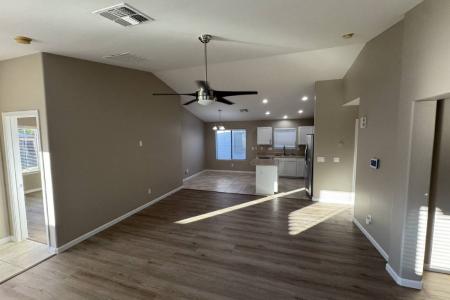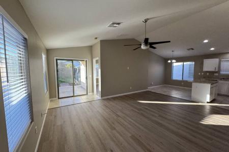 Discover this inviting 1,471 sq. ft. single-level home in the sought-after Pecan Creek community. Inside, you'll find a modern interior featuring Lvp and tile flooring throughout-no carpet-along with stainless steel... appliances and a comfortable, open layout. A generous front room off the living area offers excellent versatility and can be used as a den, office, hobby space or more. The exterior is fully landscaped in both the front and back. Out back, enjoy a relaxing outdoor setting complete with bistro lighting and a gazebo-ideal for unwinding or hosting guests. Additional highlights include a two-car garage and a clean, contemporary aesthetic throughout. Conveniently located just minutes from Fry's Marketplace, Target, The Olive Mill and Queen Creek Marketplace, this home offers easy access to everyday essentials, dining and local attractions. 4% monthly admin fee. One time 250 admin fee due at lease signing. 250 per pet/ pet fees (no cats) 39 Monthly Pet Rent (60 for two) Security Deposit required (75% refundable) Renters Insurance Required. Dishwasher, Disposal, Electric Stove, Island, Microwave, Oven, Pantry, Refrigerator, Ceramic Tile, Laminate, Den, Dining Room, Living Room, Office, Recreation Room, Air Conditioning, Blinds, Cable / Satellite, Ceiling Fan, Double Pane Windows, Dryer, Electric Heat, Garage, Vaulted Ceilings, Walk In Closet(s), Washer, Landscaping, Patio & Playground. Listing provided by RentalSource.
