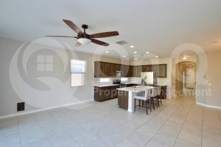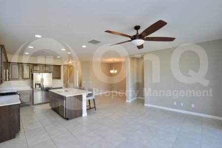 Available Now. 1,599 Sq Ft. 3 bedroom, 2 bath home in Maricopa's Homestead community. Stunning interior with modern features throughout. Desirable single story floor plan. Gorgeous eat-in kitchen with included... appliances and expansive center island/breakfast bar. Open concept living/dining, great for entertaining. Neutral interior with tile flooring in all the right places. This home offers 3 generously sized bedrooms. Primary suite with full bath + walk-in closet. Blinds. Laundry room with included washer/dryer. Enjoy a low up keep backyard with covered patio. 2 car garage + N/S exposure. Homestead is a well maintained community with playgrounds and biking/walking trails throughout. Pet Policy: Dogs Allowed with the following exceptions: Up to 2 small dogs will be considered for this home (11-25 lbs) No cats. Application: $65 Application Fee Per Applicant 18 years or older (Nonrefundable). Once all required documents have been submitted by every applicant, please allow 24-72 business hours for processing. Move-in dates more than 21 days after application approval require additional approval. Lease Length: 12-month minimum (longer lease terms may be negotiable) Initial Move-In Costs: Applicants may choose between a traditional security deposit or a Security Deposit Alternative program. A one-time lease preparation fee of $250 plus the first month's rent is due prior to move-in. If the applicant has a pet, a $150 nonrefundable pet fee per pet applies. Recurring Monthly Costs: A 4.99% administration fee applies. All on Q Property Management residents are enrolled in the Resident Benefits Package for $49. This package includes liability insurance, credit building to help boost your credit score with timely rent payments, a move-in concierge to make utility connection and home service setup simple, a Renter to Buyer program and more. All information, including advertised rent and other charges, is deemed reliable but not guaranteed and is subject to change. Small Dogs Allowed, Large Dogs Allowed, Concierge, Fenced Yard, Playground, Dishwasher, Washer, Dryer, Microwave, Refrigerator, Patio, Laundry Room, Pantry, Tile & Stove. Listing provided by RentalSource.Read more