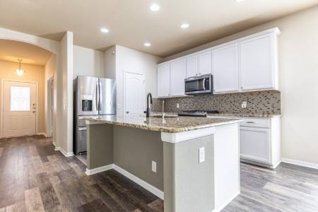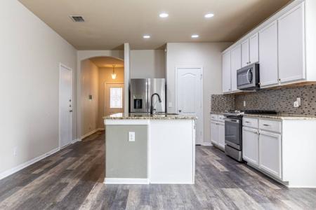 This 3-bedroom, 2-bath home with a dedicated office features no carpet throughout and a granite island kitchen equipped with stainless steel appliances. The spacious secondary bedrooms offer comfort and flexibility,... while the large primary suite includes a full bath with a double vanity, a shower/tub combination with a jetted tub and a generous walk-in closet. Additional storage is available in the two-car garage. Enjoy the serene backyard from the covered patio or take advantage of the expansive yard, perfect for outdoor activities. Available Immediately. A 6-month lease option is available with a 20percent increase in monthly rent. Approved animal fees range from $40 to $100 per month depending on Pet Screening animal score. Guidance on emotional support animals, service animals or large breed animals are found in the screening criteria document. Approved applicants have the option to borrow Security Deposit funds at lease signing. Present the Screening Criteria document posted on the MLS to your Client. Realtor Commission: $0. Tenant Concession: $0. Dishwasher, Electric Stove, Granite Countertops, Island, Microwave, Pantry, Refrigerator, Laminate, Living Room, Office, Primary Bath, Primary Bedroom, Air Conditioning, Ceiling Fan, Garage, Walk In Closet(s), Washer Dryer Hookups, Fence, Lawn, Porch & Pet Friendly. Listing provided by RentalSource.