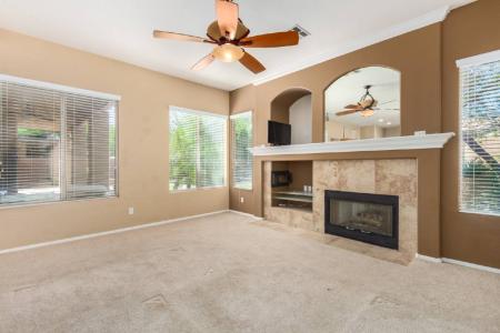 Welcome to this beautiful residence at 4326 E Melinda Ln. This 4-bedroom, 2-bathroom home combines classic Arizona charm with a spacious, airy layout designed for modern living. The interior immediately impresses... with elegant architectural cutouts that create a sense of grandeur and light throughout the home. For those who enjoy hosting, the formal living and dining areas feature soft neutrals and large windows. The heart of the home centers around a fantastic kitchen outfitted with sleek granite countertops, an island and a full suite of stainless steel appliances, all overlooking a comfortable family room anchored by a stunning floor-to-ceiling fireplace. Practical features include ceiling fans throughout, easy-care tile in high-traffic areas and a 2-car garage. Outside, the low-maintenance desert landscaping and a private backyard with a sparkling pool, firepit and covered patio provide the perfect setting for relaxing or dining al fresco. Located minutes away from the 101 freeway and the premier shopping and dining at Desert Ridge Marketplace, this property offers style and space in a prime North Phoenix location. This home is truly a must-see. Other leasing fees: $50 per adult application fee. $200 admin fee upon lease signing. $30 pet application fees - $25 if paid via Ach (if applicable) 2% monthly admin fee. $300 non refundable pet fee- per pet (if applicable) Security deposit equal to one month's rent (interested in paying $0 security deposit? Ask us about our alternative Security Options) Renters insurance required. To satisfy the insurance requirement, Tenant may either (1) be automatically enrolled into a policy that satisfies the coverage requirements for $10.95/month; or (2) obtain alternative liability coverage from an insurer of Tenant's choice. The option Tenant chooses will not affect whether Tenant's lease application is approved or the terms of Tenant's Lease. Dishwasher, Electric Stove, Gas Stove, Island, Microwave, Pantry, Refrigerator, Carpet, Ceramic Tile, Laundry Room, Living Room, Primary Bath, Air Conditioning, Blinds, Ceiling Fan, Fireplace, Pool Service, Swimming Pool & Pet Friendly. Listing provided by RentalSource. Read more