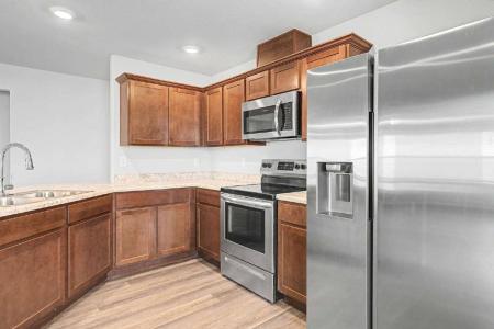The lovely floor plan is rich with curb appeal with it's welcoming covered entryway and front yard landscaping. This one-story home features 3 bedrooms, 2 bathrooms, a large family room and a kitchen fully... equipped with energy-efficient appliances, abundant counterspace and a pantry. The laundry room is nestled between the garage and kitchen for quick, convenient access, washer, dryer and fridge plus a new fenced in back yard will be provided. The Fridge, washer and dryer are included. Dishwasher, Disposal, Oven, Refrigerator, Carpet, Laminate, Air Conditioning, Blinds, Dryer, Garage, Walk In Closet(s), Washer, Washer Dryer Hookups, Lawn, Patio & Pet Friendly. Listing provided by RentalSource. Read more