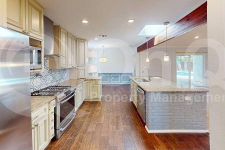 Welcome to this beautifully updated 4-bedroom, 2-bath, 2,579 sq. ft. home in Preston Cove Addition of Plano. This spacious two-story layout blends modern comfort with timeless style, featuring hardwood and tile... flooring in the main living areas and plush carpet in the main bedroom. Step into a bright, open-concept living room filled with natural light, overlooking a serene backyard oasis. The chef's kitchen boasts granite countertops, a gas stove with a convenient pot-filler faucet, stainless steel appliances, a sleek vent hood, Ss refrigerator, elegant backsplash and a breakfast bar perfect for casual dining. The primary suite offers a relaxing retreat with a luxurious en-suite bathroom complete with dual vessel sinks, a stand-up shower with built-in bench and triple shower heads, a soaking tub and a custom walk-in closet. Enjoy outdoor living at it's best with a sparkling swimming pool featuring a slide, a covered patio and a low-maintenance backyard ideal for entertaining. Additional highlights include two dining areas, a full-size washer and dryer, accent lighting throughout and a 2-car garage with built-in storage. Bonus: Receive a $300 credit toward move-in costs. Pet Policy: Dogs and Cats Allowed with the following exceptions: Upon Owner Approval; Max 2 Under 40 lbs. Application: $65 Application Fee Per Applicant 18 years or older (Nonrefundable). Please allow 24 to 72 business hours to process the Application once all required documents are submitted by all applicants. Move-in dates beyond 21 days from the Application Approval will require special approval. Lease Length: 12-month Minimum (Longer Lease Term may be negotiable) Initial Move-In Costs: Upon application approval, a nonrefundable Holding Retainer of at least 1 times the monthly rent but not greater than 1.5 times the monthly rent will be required to secure the property. The holding retainer is 75% refundable. A one-time lease preparation fee of $250 as well as the first month's rent is due prior to move-in. If the Applicant has a Pet, $150 Non-Refundable Pet Fee per pet. Recurring Monthly Costs: There is a 1.9% Administration Fee. All on Q Property Management Residents are enrolled in the Resident Benefits Package for $39 or $49 with pets, which includes liability insurance, credit building to help boost the resident's credit score with timely rent payments, move-in concierge service making utility connection and home service setup a breeze during your move-in, Renter to Buyer program and much more. All information including advertised rent and other charges are deemed reliable but not guaranteed and is subject to change. Pet Friendly, Concierge, Fenced Yard, Pool, Dishwasher, Washer, Dryer, Microwave, Refrigerator, Patio, Dining Room, Laundry Room, Pantry, Carpet, Hardwood, Tile & Stove. Listing provided by RentalSource.