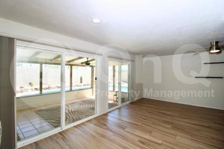 Available Now. 1,993 sq. ft. Thoughtful 3 bedroom, 2 bath home. Charming kitchen with included appliances + plenty of cabinet/countertop space + breakfast bar. Open concept living, with a great room and Arizona room... for indoor/outdoor living. Neutral interior with tile flooring in all the right places. Primary bedroom with ensuite bath + walk in shower + walk in closet. Blinds. 3 nicely sized bedrooms. 2 car garage. Fantastic N/S Exposure with views of South Mountain. The home backs up to the greenbelt with no neighbors behind. This bright and open floor plan has lots of natural light. Side yard is perfect for pets or toys. Gorgeous pool. Pet Policy: Dogs and Cats Allowed with the following exceptions: 1 pet will be considered upon approval. Application: $65 Application Fee Per Applicant 18 years or older (Nonrefundable). Once all required documents have been submitted by every applicant, please allow 24-72 business hours for processing. Move-in dates more than 21 days after application approval require additional approval. Lease Length: 12-month minimum (longer lease terms may be negotiable) Initial Move-In Costs: Applicants may choose between a traditional security deposit or a Security Deposit Alternative program. A one-time lease preparation fee of $250 plus the first month's rent is due prior to move-in. If the applicant has a pet, a $150 nonrefundable pet fee per pet applies. Recurring Monthly Costs: A 4.99% administration fee applies. All on Q Property Management residents are enrolled in the Resident Benefits Package for $49. This package includes liability insurance, credit building to help boost your credit score with timely rent payments, a move-in concierge to make utility connection and home service setup simple, a Renter to Buyer program and more. All information, including advertised rent and other charges, is deemed reliable but not guaranteed and is subject to change. Pet Friendly, Concierge, Fenced Yard, Pool, Dishwasher, Washer, Dryer, Microwave, Refrigerator, Patio, Family Room, Walk In Closet & Tile. Listing provided by RentalSource. Read more