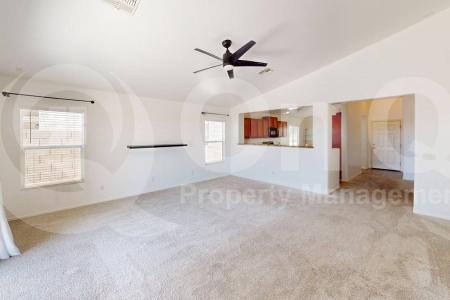 Available Now. This 1,406 square foot single-story home features 3 bedrooms and 2 bathrooms in The Villages at Copper Basin community. The kitchen comes equipped with modern appliances including refrigerator,... dishwasher, microwave and oven for convenient meal preparation. The open living room provides a comfortable gathering space with ceiling fans and air conditioning throughout the home for year-round comfort. Carpet and tile flooring flows seamlessly through the interior spaces, while blinds offer privacy and light control. The primary bedroom offers a peaceful retreat, while two additional bedrooms provide flexibility for family, guests or home office needs. Both bathrooms are well-appointed to serve the household's daily routines. The dedicated laundry room includes washer and dryer for added convenience. A 2-car garage with garage door opener provides secure parking and storage, along with covered parking options. The fully fenced yard creates a private outdoor space perfect for relaxation or entertaining. Located in San Tan Valley's desirable Villages at Copper Basin neighborhood, residents enjoy easy access to local shopping, dining and recreational opportunities. The community offers a peaceful suburban setting while maintaining convenient access to major commuter routes for those traveling to Phoenix and surrounding areas. Pet Policy: Dogs Allowed with the following exceptions: Dogs will be considered, no cats. Application: $65 Application Fee Per Applicant 18 years or older (Nonrefundable). Once all required documents have been submitted by every applicant, please allow 24-72 business hours for processing. Move-in dates more than 21 days after application approval require additional approval. Lease Length: 12-month minimum (longer lease terms may be negotiable) Initial Move-In Costs: Applicants may choose between a traditional security deposit or a Security Deposit Alternative program. A one-time lease preparation fee of $250 plus the first month's rent is due prior to move-in. If the applicant has a pet, a $150 nonrefundable pet fee per pet applies. Recurring Monthly Costs: A 4.99% administration fee applies. All on Q Property Management residents are enrolled in the Resident Benefits Package for $49. This package includes liability insurance, credit building to help boost your credit score with timely rent payments, a move-in concierge to make utility connection and home service setup simple, a Renter to Buyer program and more. All information, including advertised rent and other charges, is deemed reliable but not guaranteed and is subject to change. Small Dogs Allowed, Large Dogs Allowed, Concierge, Fenced Yard, Dishwasher, Washer, Dryer, Microwave, Refrigerator, Ceiling Fan, Laundry Room, Office, Carpet & Tile. Listing provided by RentalSource. Read more