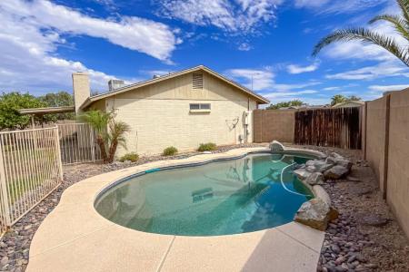 Location, Location, Location. This beautiful home is situated on a spacious, private pie-shaped lot in a quiet cul-de-sac with convenient access to I-10, Highway 60, ASU and Arizona Mills Mall. The home features a... new Paddock Pebbletec play pool (added in 2000), providing the perfect outdoor oasis. Inside, enjoy the airy, open layout with a modern remodel completed in 2000, including 16-inch neutral tile flooring in the great room, kitchen and high-traffic areas and comfortable carpeting in each of the three bedrooms. The master bedroom is a relaxing retreat with a split layout, walk-in closet, en-suite bath and elegant French doors that open to a grassy backyard. A mosaic-tiled hearth fireplace adds warmth and charm to the living area. Additional upgrades include a new A/C installed in 2001, ensuring comfort and efficiency. City of Tempe law requires no more than 3 unrelated individuals living in the home. Pets allowed: Small dogs only. Other leasing fees: $50 per adult application fee. $200 admin fee upon lease signing. $30 pet application fees - $25 if paid via Ach (if applicable) 2% monthly admin fee. $300 non refundable pet fee- per pet (if applicable) Security deposit equal to one month's rent (interested in paying $0 security deposit? Ask us about our alternative Security Options) Renters insurance required. To satisfy the insurance requirement, Tenant may either (1) be automatically enrolled into a policy that satisfies the coverage requirements for $10.95/month; or (2) obtain alternative liability coverage from an insurer of Tenant's choice. The option Tenant chooses will not affect whether Tenant's lease application is approved or the terms of Tenant's Lease. Dishwasher, Disposal, Electric Stove, Freezer, Ice Maker, Microwave, Oven, Refrigerator, Carpet, Ceramic Tile, Dining Room, Living Room, Primary Bath, Primary Bedroom, Air Conditioning, Ceiling Fan, Dryer, Fireplace, Garage, Storage, Walk In Closet(s), Washer, Patio, Swimming Pool & Pet Friendly. Listing provided by RentalSource.