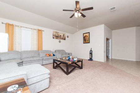 Ask us how we can reduce your move-in costs with our Fee in Lieu of Security Deposit Program. A beautiful modern home with an open layout. Inside, you'll find a spacious family room that flows into the kitchen with... granite countertops and a dining area. The master bedroom, which features coffered ceilings, has a walk-in closet. The bathroom boasts a separate shower, soaking tub and double vanity. The other bedrooms have high ceilings and mini walk-in closets. There's also an office that could be used as a fourth bedroom. The garage has useful features like a door opener, water softener and sprinkler systems for the yard. The backyard is fenced for privacy. Attention: All leases will be enrolled into the StarPointe Realty Residential Benefit Package program. Participation is mandatory. Granite Countertops, Island, Microwave, Carpet, Ceramic Tile, Laundry Room, Living Room, Office, Primary Bath, Primary Bedroom, Study, Ceiling Fan, Garage, Fence & Pet Friendly. Listing provided by RentalSource. Read more