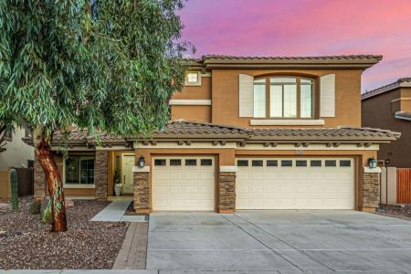 Enchanting 4-bed, 4.5-bath home is waiting for you. From the moment you arrive, you'll be impressed by the 3-car garage, stone accents, & a cozy front porch. Inside, a harmonious blend of comfort & elegance will... greet you, accented by tile flooring, tall ceilings, graceful archways, & tons of natural light. This beauty features an inviting living room, formal dining room, & a large family room enhanced by a delightful fireplace. Chef's kitchen boasts recessed lighting, abundant cabinetry w/crown molding, gleaming Ss appliances, quartz counters, butler's service area, a custom island w/a breakfast bar, & a breakfast nook. Owner's retreat won't disappoint, showcasing a sitting room & a modern ensuite equipped w/two vanities, make-up desk, soaking tub. Additional highlights include an open den & a flexible bonus room, perfect for an office, media space or gym. Spacious backyard provides a covered patio & well-laid pavers. Don't miss. 12-month minimum lease. Pets ok with approval and an additional deposit. The security deposit is equal to one month rent. The application fee is $55 per adult. Initial Move-In Costs: Security Deposit - Minimum of 1X monthly rent but not greater than 1.5X monthly rent. First Month's Rent + $65 Resident Services Package Setup Fee. Pets - If applicable, a non-refundable Pet Fee in the amount of $300 per pet is required. Recurring Monthly Costs: Monthly Rent. $50/$65 Resident Services Package (includes renters' insurance, credit reporting, rewards program, pest control, air filter delivery and more). Pets - If applicable, $35 pet rent for first animal and $25 for each additional animal. Additional Disclosures: For most properties, PPG Property Management Does Not inspect the condition of provided washers, dryers or refrigerators. They are provided in as is condition and are fully the tenant's responsibility. PPG Property Management Llc is an Arizona Limited Liability Company. PPG Property Management does business in accordance with the Fair Housing Act. PPG Property Management does not discriminate against anyone based on race, color, religion, sex, handicap, familial status or national origin. PPG Property Management is not responsible for any error or omission in the wording or content of this information. The information contained in this ad is accurate to the best of our knowledge. PPG Property Management. 15411 W Waddell Rd, Suite 106, Surprise, Arizona, 85379. (602) 374-2302. Small Dogs Allowed, Large Dogs Allowed, Porch, Washer, Dryer, Refrigerator, Fireplace, Patio, Breakfast Nook, Dining Room, Family Room, Office & Tile. Listing provided by RentalSource.