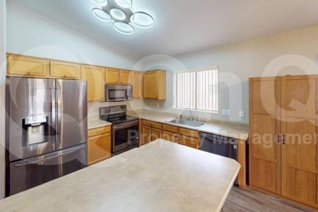 1,907 Sq Ft. 3 bedroom, 2 bath home with a charming single-story floor plan in Casa Grande. Home opens to a large living/dining room, great for entertaining. Kitchen boasts ample cabinetry, laminate countertops, an... island with a breakfast bar and included appliances. Ceiling fans and blinds throughout. Vaulted ceilings. Lovely 3 bedroom home coming with carpet and hardwood flooring in all the right places. Primary bedroom offers an ensuite bathroom, dual sinks, separate shower/bath and an expansive walk-in closet. Covered patio for relaxing outside, charming landscape in the backyard. 2 car garage. Laundry room with included washer/dryer. Convenient Casa Grande location, close to shopping, schools and restaurants. Pet Policy: Dogs Allowed. Application: $65 Application Fee Per Applicant 18 years or older (Nonrefundable). Please allow 24 to 72 business hours to process the Application once all required documents are submitted by all applicants. Move-in dates beyond 21 days from the Application Approval will require special approval. Lease Length: 12-month Minimum (Longer Lease Term may be negotiable) Initial Move-In Costs: Upon application approval, a nonrefundable Holding Retainer will be required to secure the property and will be applied towards the move-in costs. The Holding Retainer amount is determined by the type of Security Deposit option you choose. Applicants can choose between a traditional Security Deposit which may be 1.25 times the monthly rent but not greater than 1.5 times the monthly rent (75% refundable) or a Security Deposit Alternative program (only available on long-term leases of 12 months or more). A $250 one-time lease preparation fee as well as the first month's rent is due prior to move-in. If the Applicant has a Pet, $150 Non-Refundable Pet Fee per pet. Recurring Monthly Costs: There is a 3.3% Administration Fee. All on Q Property Management Residents are enrolled in the Resident Benefits Package for $39 or $49 with pets, which includes liability insurance, credit building to help boost the resident's credit score with timely rent payments, move-in concierge service making utility connection and home service setup a breeze during your move-in, Renter to Buyer program and much more. All information including advertised rent and other charges are deemed reliable but not guaranteed and is subject to change. Small Dogs Allowed, Large Dogs Allowed, Concierge, Fenced Yard, Dishwasher, Washer, Dryer, Microwave, Refrigerator, Ceiling Fan, Patio, Vaulted Ceiling, Dining Room, Family Room, Laundry Room, Pantry, Carpet, Hardwood & Laminate. Listing provided by RentalSource.