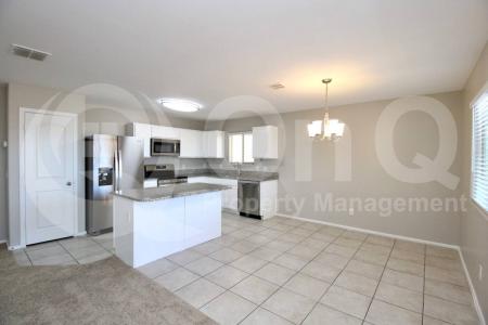$1,000 move in special. Available Now. 1,873 Sq Ft. Discover this beautifully upgraded 4-bedroom, 2.5-bath home in the Oasis at Magic Ranch, Florence. Featuring a two-story layout, the home has been freshly painted... and boasts brand new carpeting. The modern eat-in kitchen features trendy white cabinetry, granite countertops and new stainless steel appliances, along with a center island with breakfast bar and pantry. The kitchen opens to a spacious family room, making it perfect for entertaining. Enjoy tile flooring in all the right areas. The primary bedroom offers a full bath and a generous walk-in closet. Three additional well-sized bedrooms each with blinds and ceiling fans. Other highlights include a 2-car garage and a fenced yard complete with a covered back patio and low-maintenance landscaping. N/S exposure. Oasis at Magic Ranch is a well-maintained community featuring playgrounds and walking paths, all in a fantastic location with quick access to Hunt Highway. Pet Policy: Dogs and Cats Allowed with the following exceptions: Small Pets. Application: $65 Application Fee Per Applicant 18 years or older (Nonrefundable). Please allow 24 to 72 business hours to process the Application once all required documents are submitted by all applicants. Move-in dates beyond 21 days from the Application Approval will require special approval. Lease Length: 12-month Minimum (Longer Lease Term may be negotiable) Initial Move-In Costs: Upon application approval, a nonrefundable Holding Retainer will be required to secure the property and will be applied towards the move-in costs. The Holding Retainer amount is determined by the type of Security Deposit option you choose. Applicants can choose between a traditional Security Deposit which may be 1.25 times the monthly rent but not greater than 1.5 times the monthly rent (75% refundable) or a Security Deposit Alternative program (only available on long-term leases of 12 months or more). A $250 one-time lease preparation fee as well as the first month's rent is due prior to move-in. If the Applicant has a Pet, $150 Non-Refundable Pet Fee per pet. Recurring Monthly Costs: There is a 3.3% Administration Fee. All on Q Property Management Residents are enrolled in the Resident Benefits Package for $39 or $49 with pets, which includes liability insurance, credit building to help boost the resident's credit score with timely rent payments, move-in concierge service making utility connection and home service setup a breeze during your move-in, Renter to Buyer program and much more. All information including advertised rent and other charges are deemed reliable but not guaranteed and is subject to change. Attention: This property has an approved applicant pending receipt of their holding deposit. We are actively accepting backup applications, as the property will remain available to qualified applicants until the holding deposit is secured. Pet Friendly, Concierge, Fenced Yard, Playground, Dishwasher, Microwave, Refrigerator, Ceiling Fan, Patio, Family Room, Laundry Room, Pantry, Carpet & Tile. Listing provided by RentalSource.