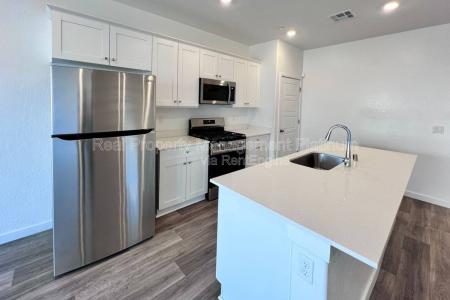 4 bedroom - 2 bathroom - 1,775 sq ft - 2025 Build. Enjoy this Energy Efficient home with Tesla Solar Panels and Power wall. Open floor plan featuring spacious great room with additional flex space. Modern Kitchen... with quartz countertops, stainless steel refrigerator, microwave, gas stove / oven, dishwasher / disposal. Wood plank flooring throughout. Carpet in bedrooms. Primary bedroom features a walk-in closet, en suite with walk-in shower, vanity with 2 sinks. 3 additional bedrooms. 1 full guest bathroom with tiled shower / tub combo. Spacious Interior laundry room with electric hook ups. Multiple storage closets. Attached 2 car garage. Yard Care is tenant responsibility. Yes Pets. No smoking. Credit score above 650 Required. Renters Insurance is required. Solar panels, tenant pays Pg&e, TrueUp, Fresno Utilities. Cross streets Dakota and Temperance. Clovis Unified school district. Dre#01901101. All information is deemed reliable but not guaranteed and is subject to change. Amenities: Non Smoking. Renter's Insurance Required. Pet Friendly, H O O K U P S, Fenced Yard, Dishwasher, Garbage Disposal, Microwave, Range Oven, Refrigerator, Double Pane Windows, Laundry Room, Master Bath, Office, Carpet, Tile, Stove, Central & Solar. Listing provided by RentalSource. Read more